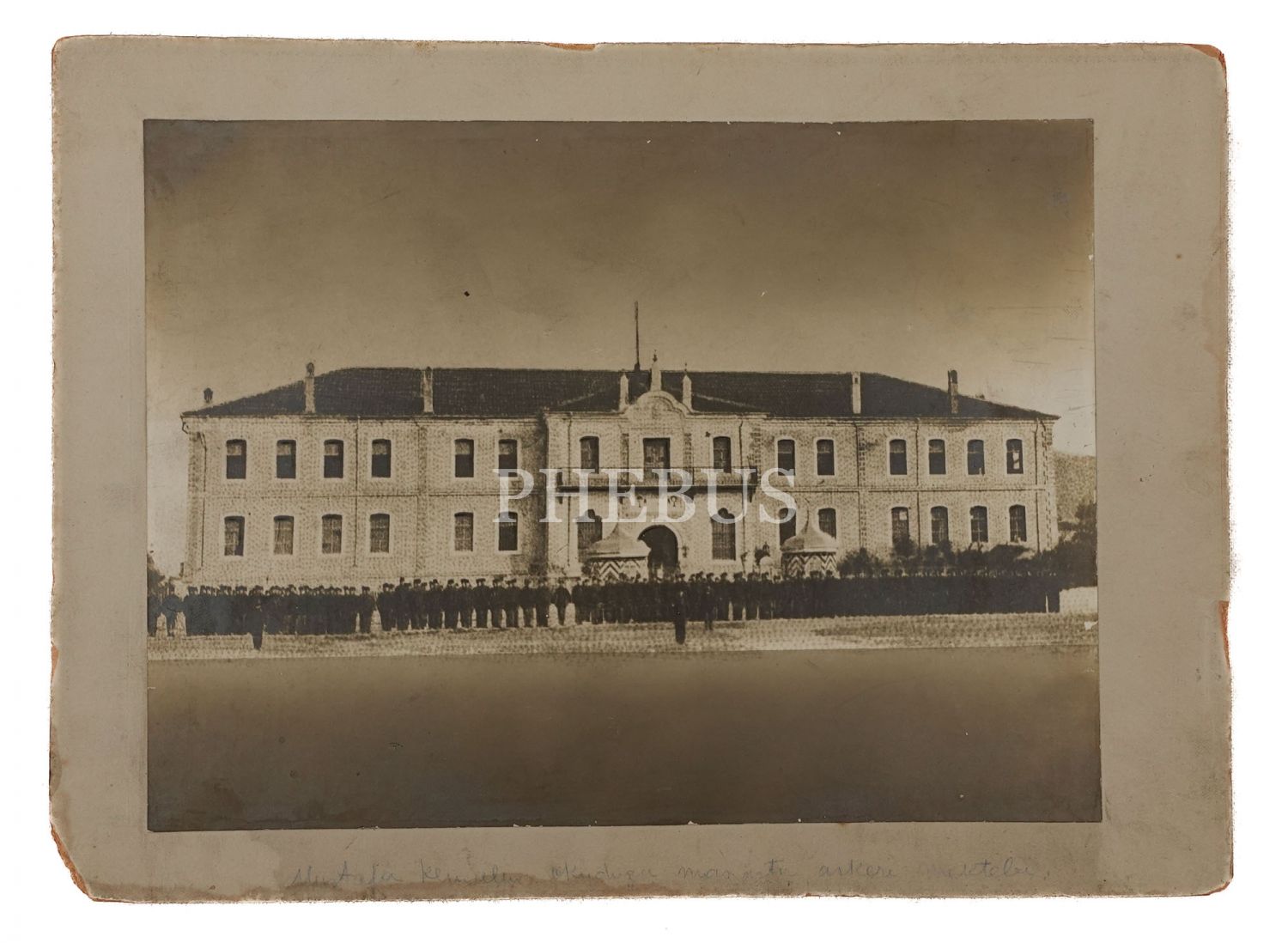Hareket Ordusu Komutanı Hüseyin Hüsnü Paşa ve Ordunun Kurmay Başkanı Mustafa Kemal Atatürk, Selanik´ten İstanbul´a hareketlerinden önce, Selanik Tren Garı´nda, Nisan 1909, "Sebah&Joaillier, Constantinople" reklamlı paspartusunda, fotoğraf 24x18 cm, paspartu 30x22 cm...