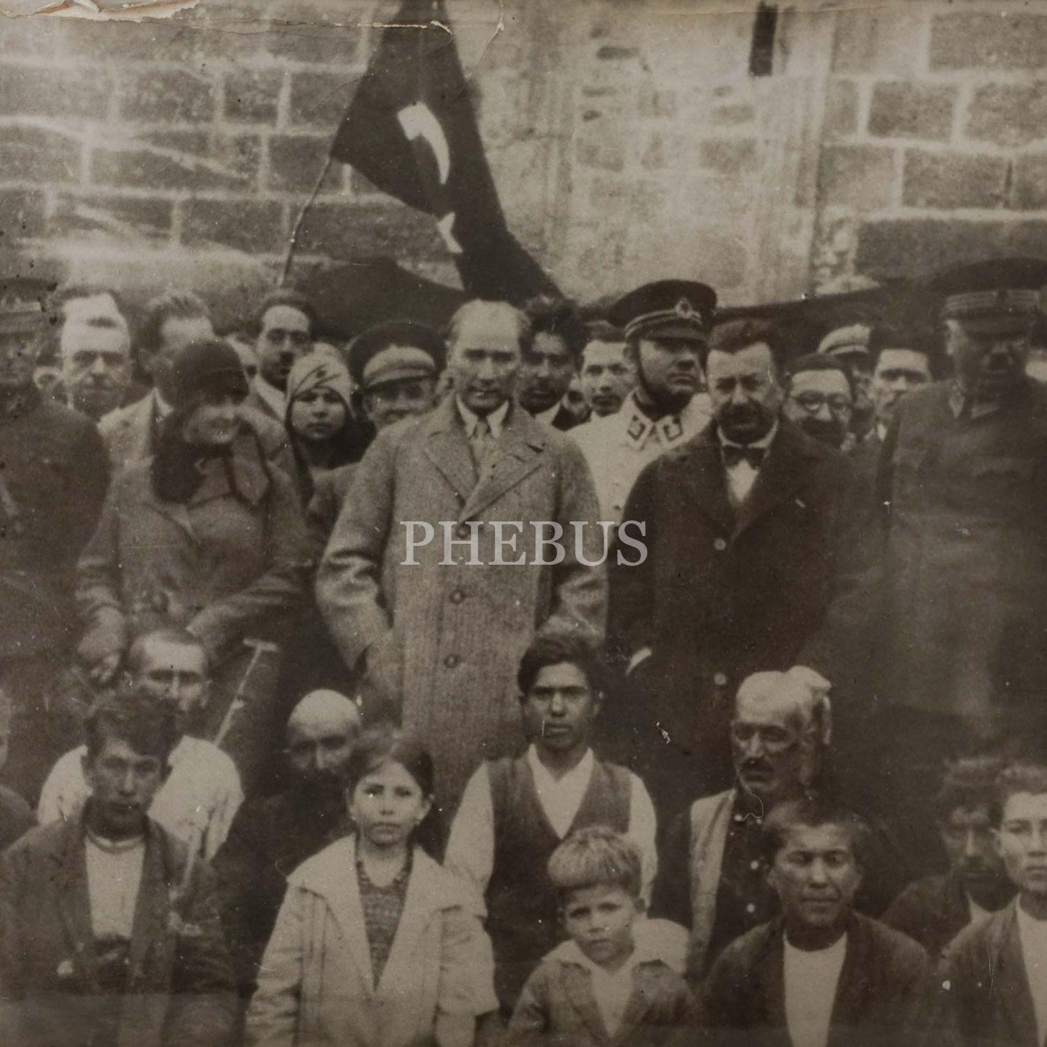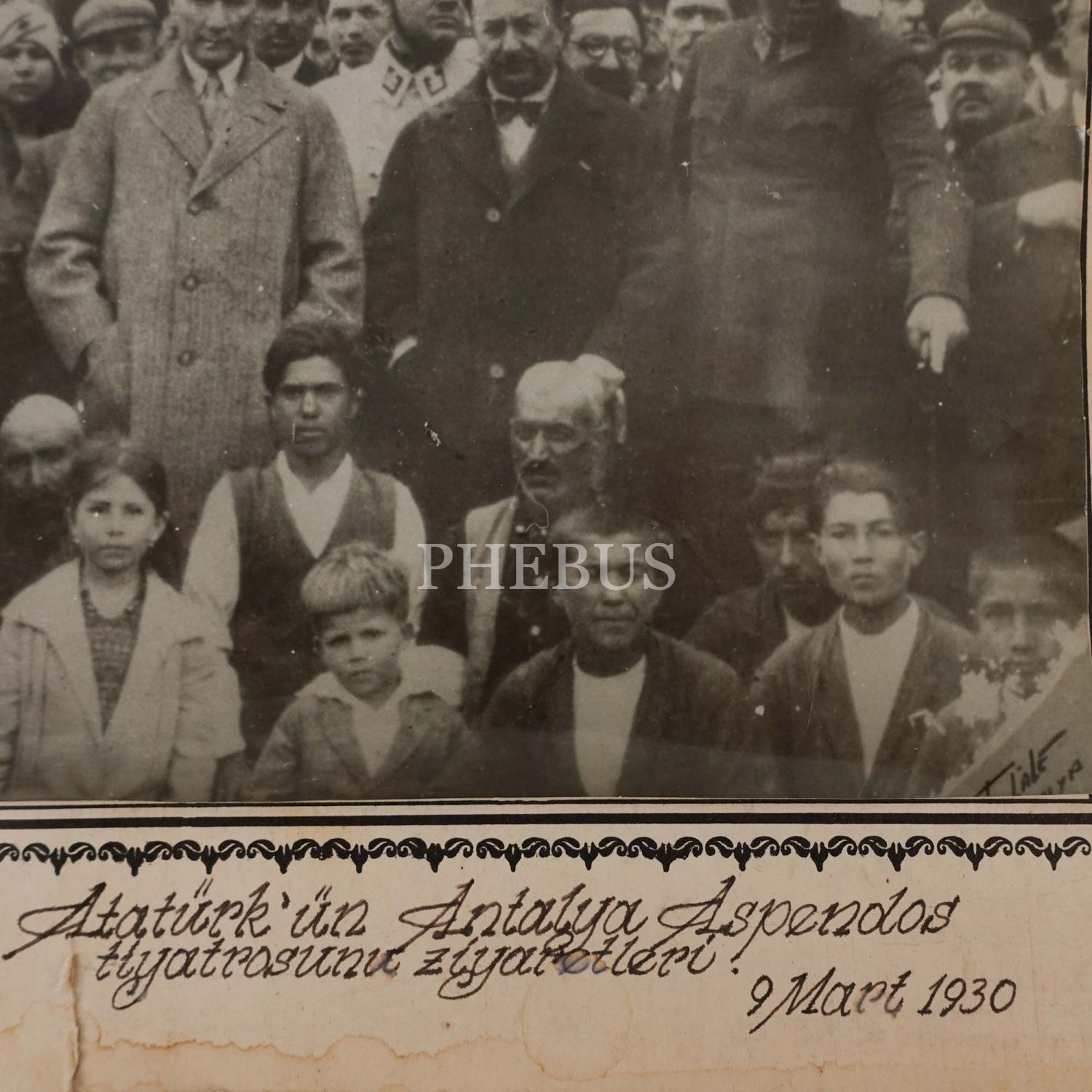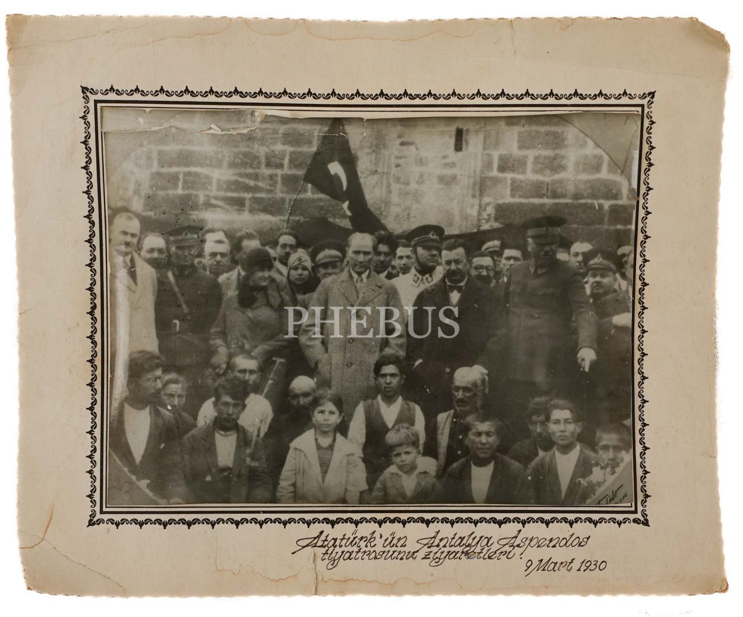 Mustafa Kemal Atatürk´ün İzmir´de, İplikçizade Köşkü önünde çekilmiş fotoğrafı, 1922, "Sebah&Joaillier, Constantinople" reklamlı paspartusunda, fotoğraf 24x18 cm, paspartu 30x22 cm...