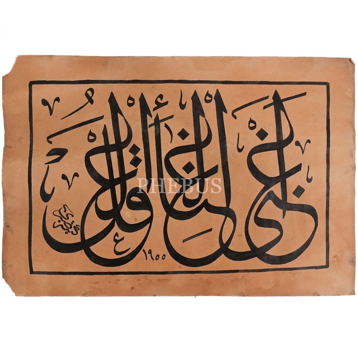 Sabri ketebeli 1954 tarihli celi sülüs istif yazı, 42x30 cm...