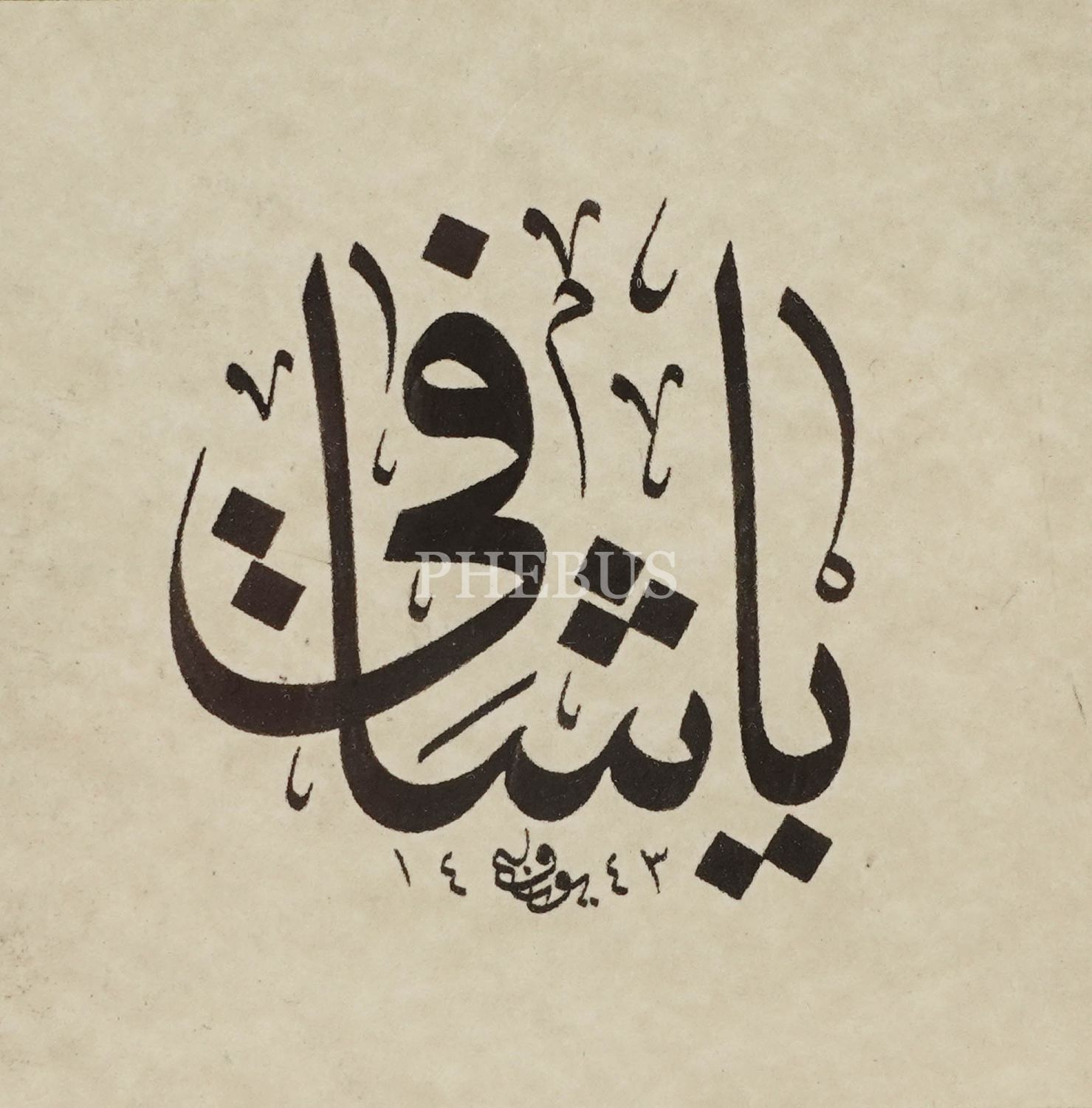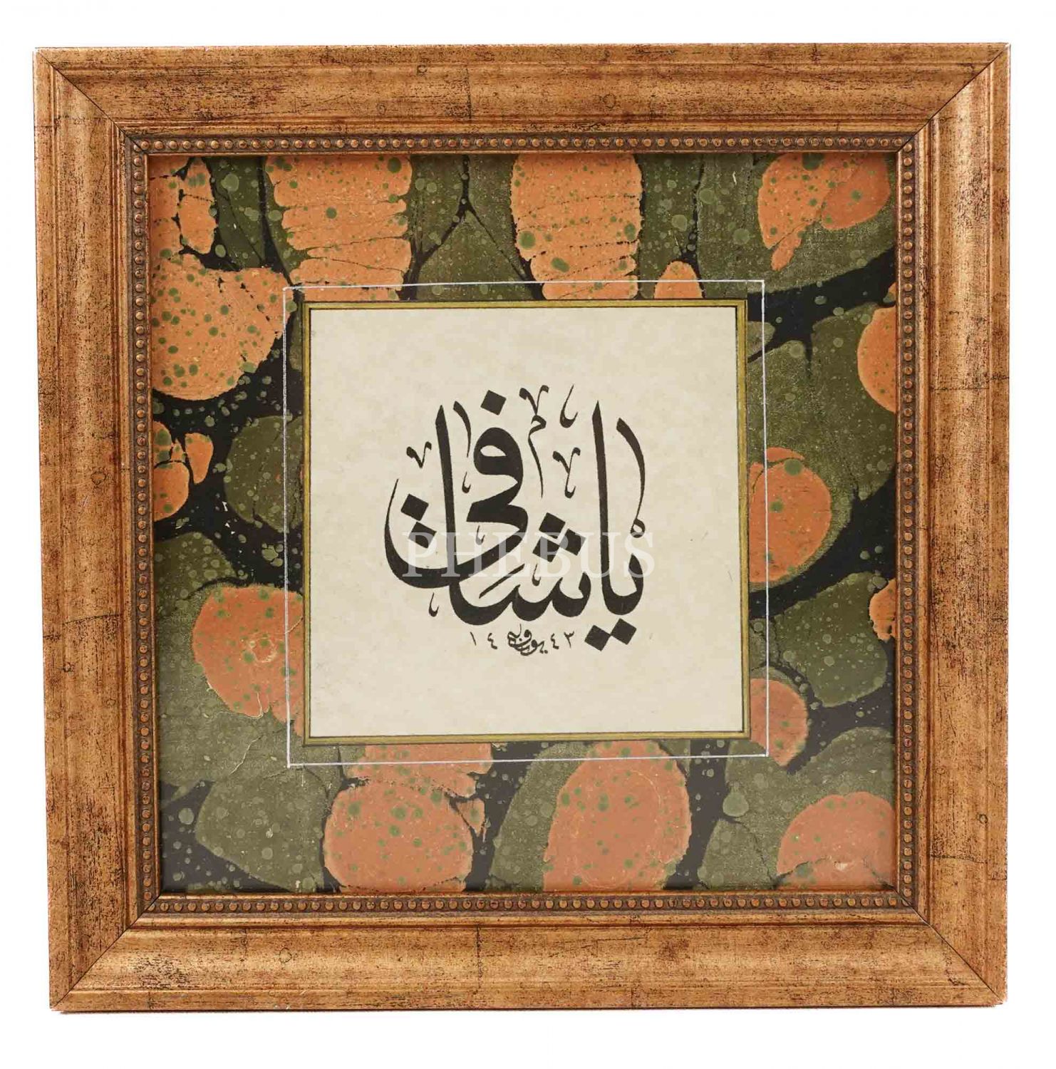 Yusuf ketebeli sülüs "Ya Şâfî", 1443 tarihli, yazı ölçü: 12x12 cm, çerçeve: 25x25 cm...