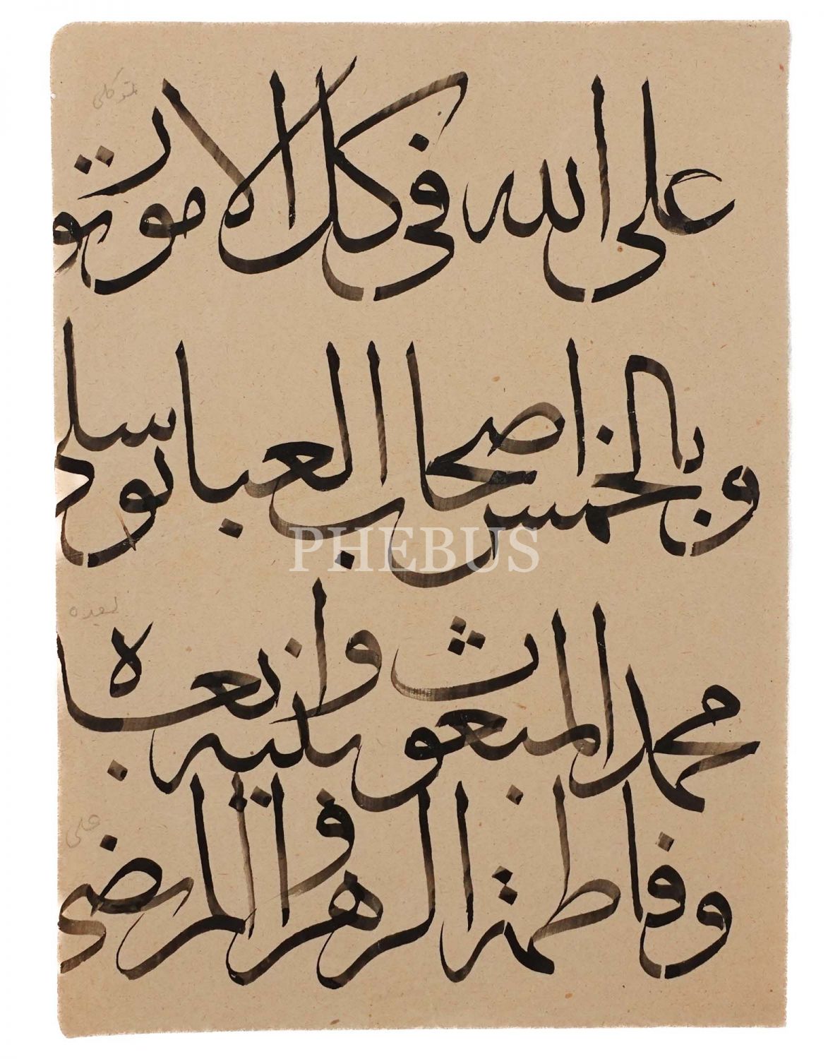 Halim Özyazıcı terekesinden Mahmud Celaleddin Efendi´nin meşhur sülüs yazısının karalaması, 22x16 cm...