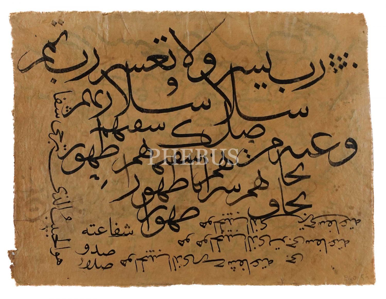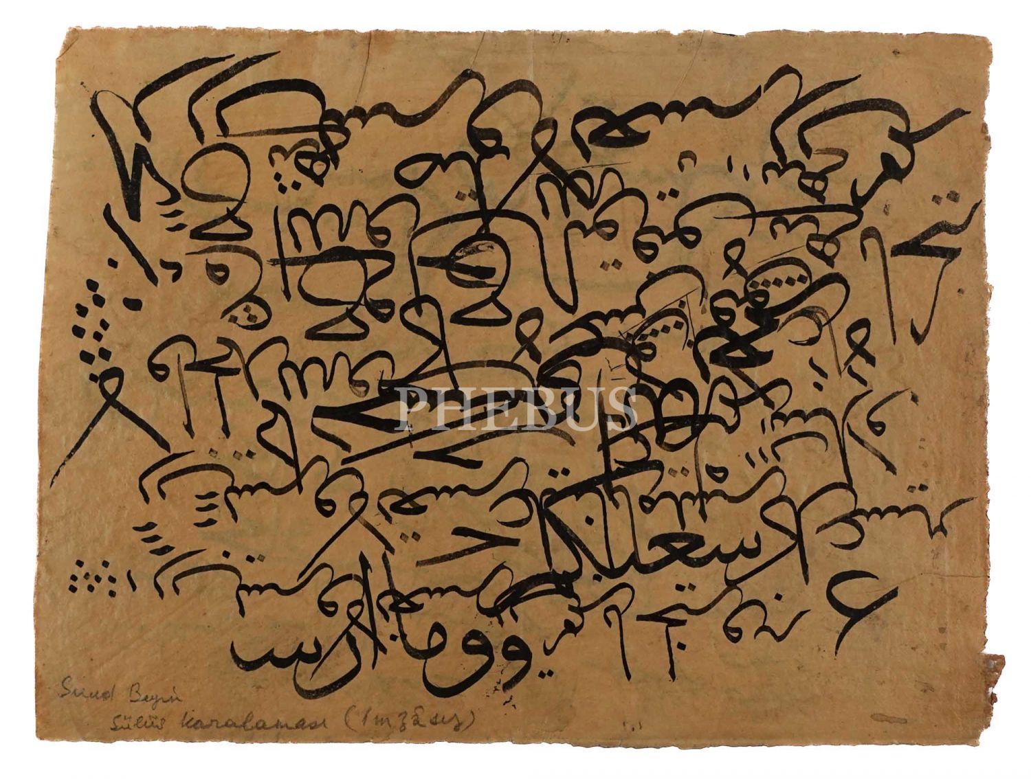 Suud el-Mevlevi imzasız sülüs-nesih karalama, kağıdın iki yüzü kullanılmış, 24x18 cm...