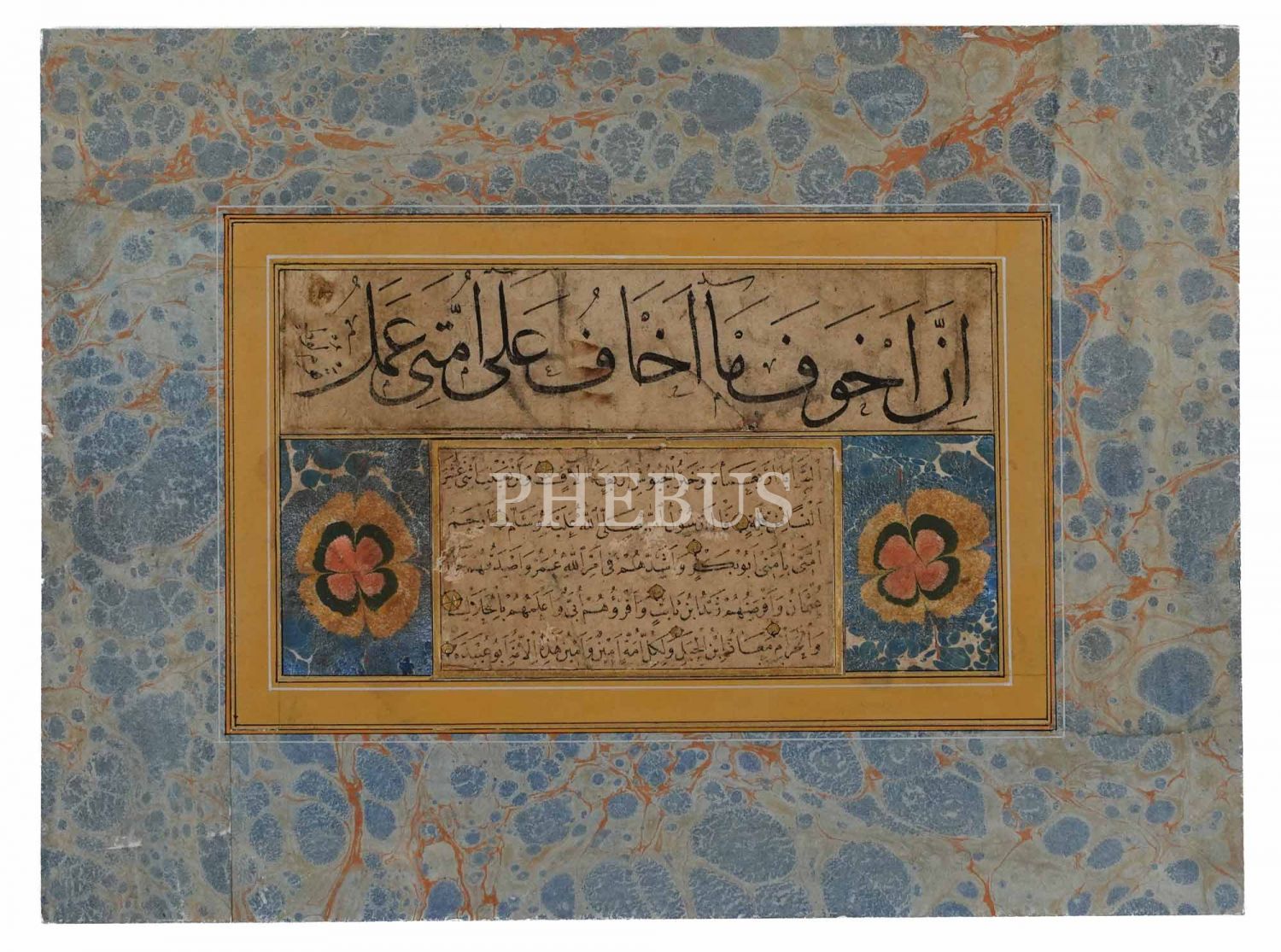 Şeyh Hamdullah dönemi sülüs-nesih koltuklu levha, yazı ölçü: 16x9 cm, paspartu: 27x20 cm...