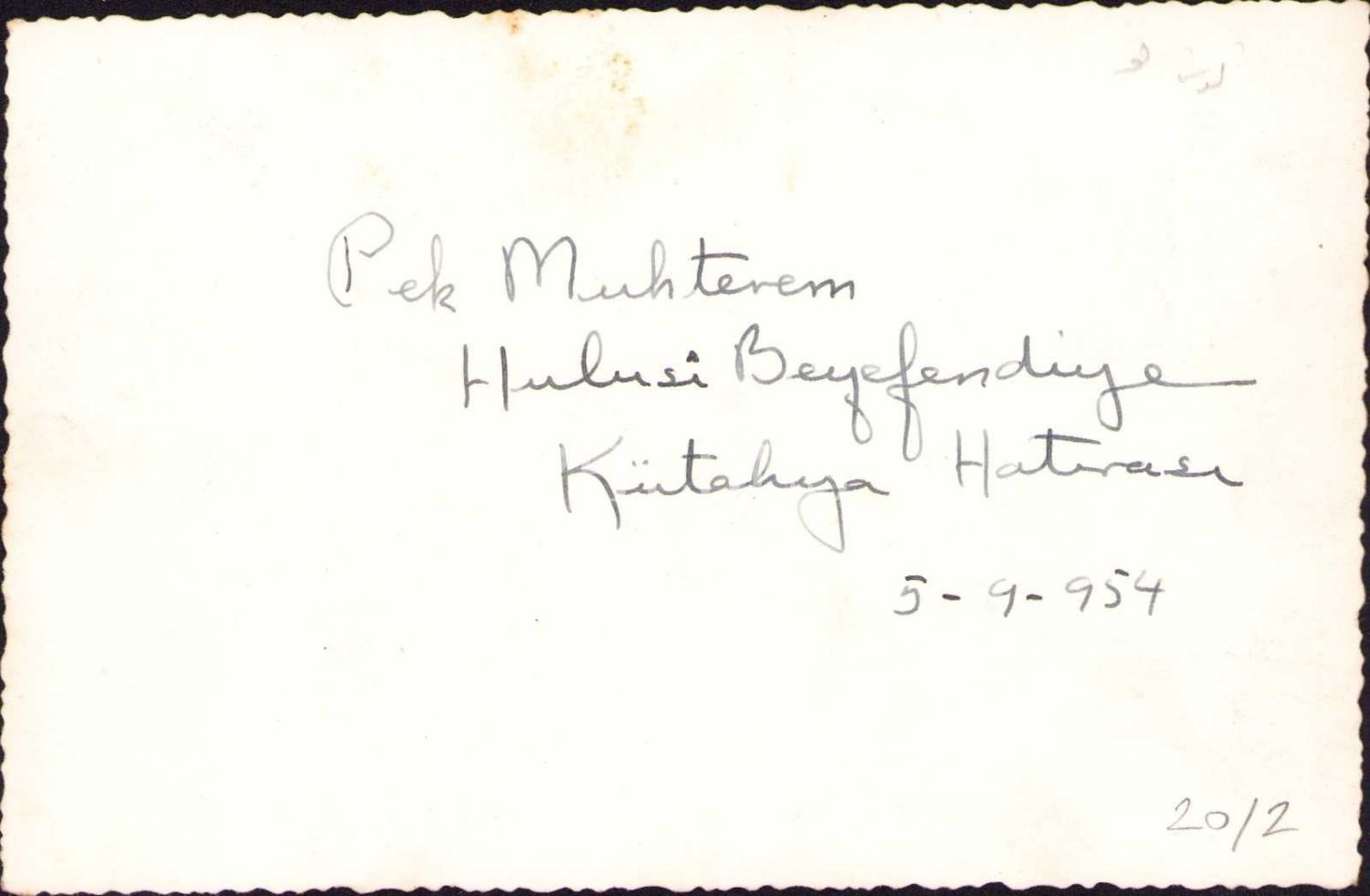 "Pek muhterem Hulusi Beyefendiye Kütahya hatırası 1954"