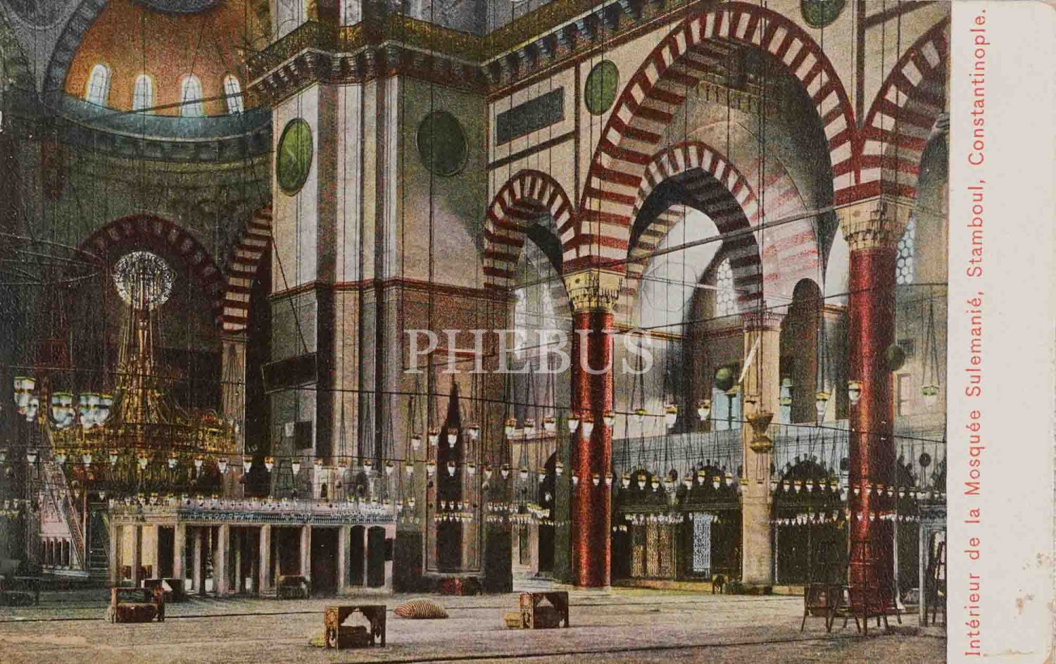Süleymaniye Camii, "Interieur de la Mosquée Sulemanie, Stamboul, Constantinople", 14x9 cm...