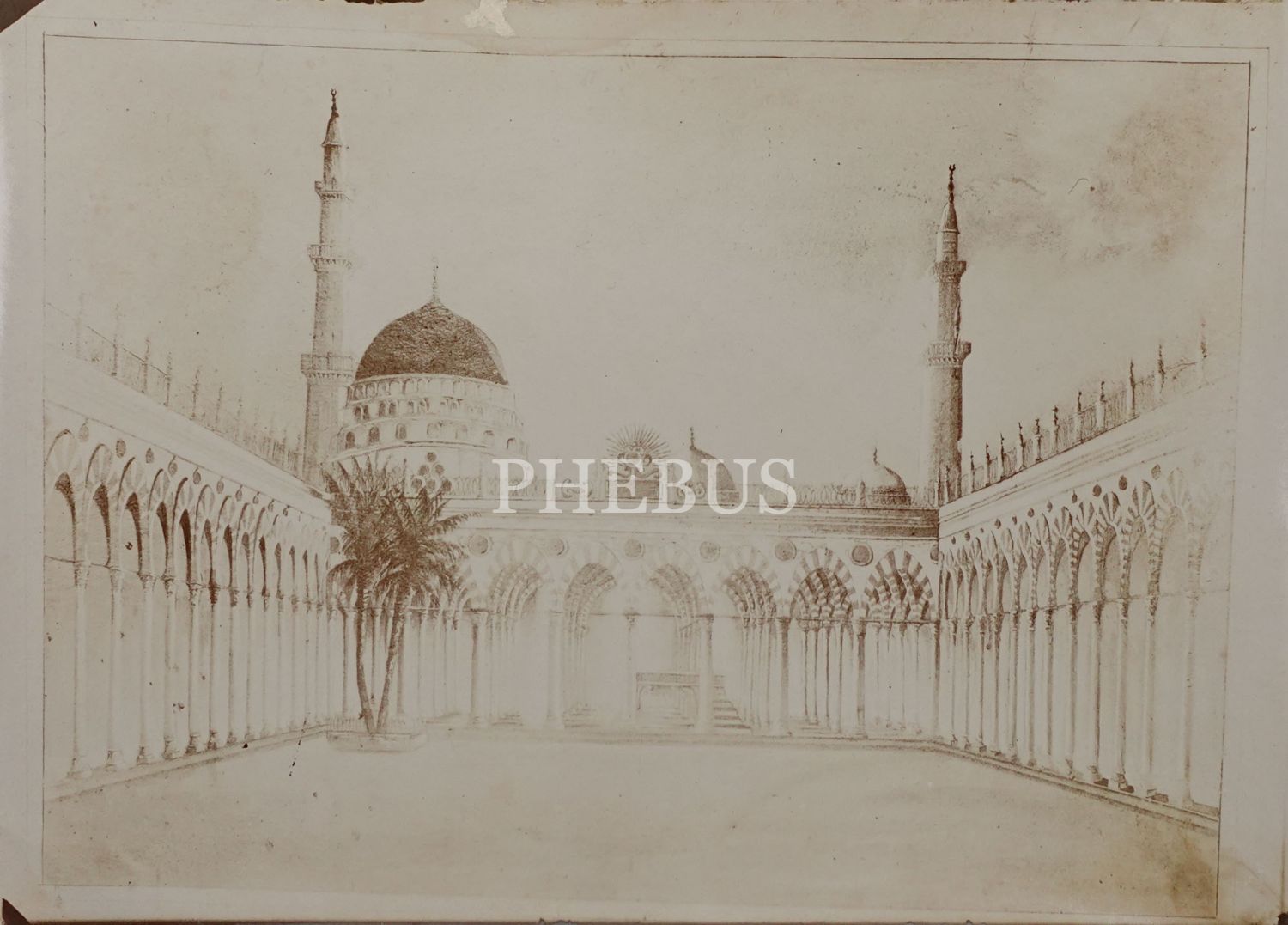 Mescid-i Nebevi´nin eski dönem bir çiziminin fotoğrafı, 17x13 cm...