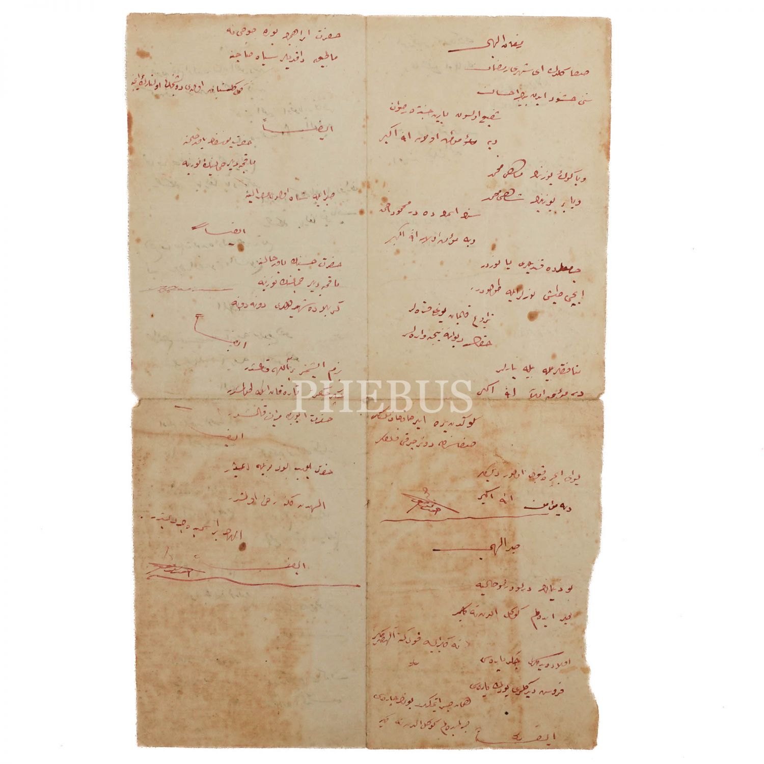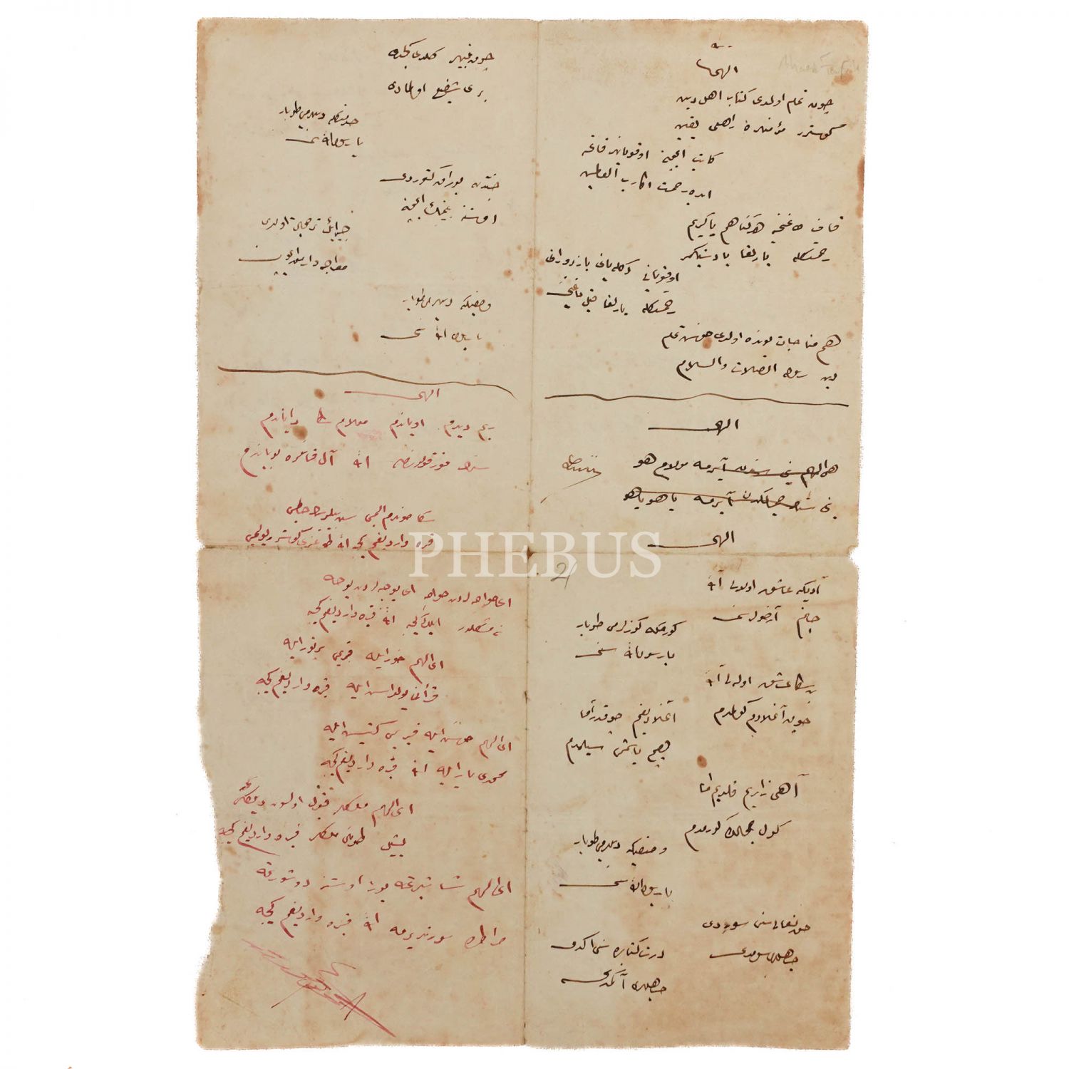 Osmanlı döneminde kaleme alınmış arkalı-önlü ilahi yazılı sahife, 23x35 cm...