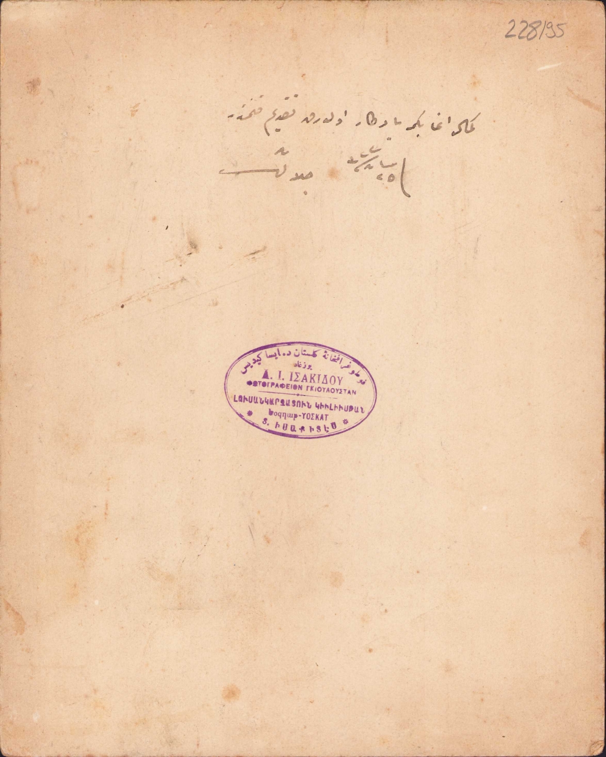Altında Osmanlıca "Reji Müdürünün oğlu ve Evkaf müdürünün oğlu' yazmaktadır.