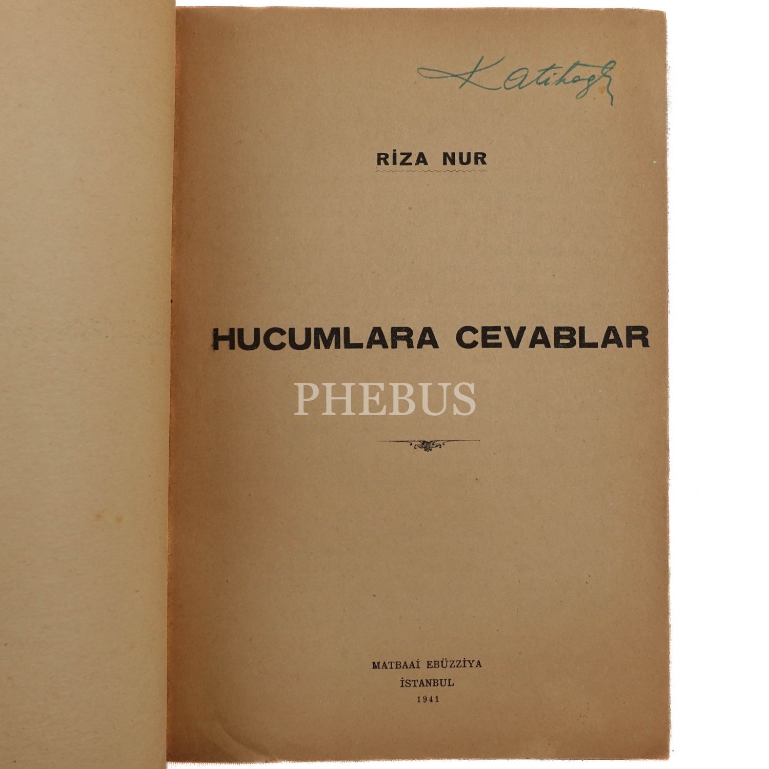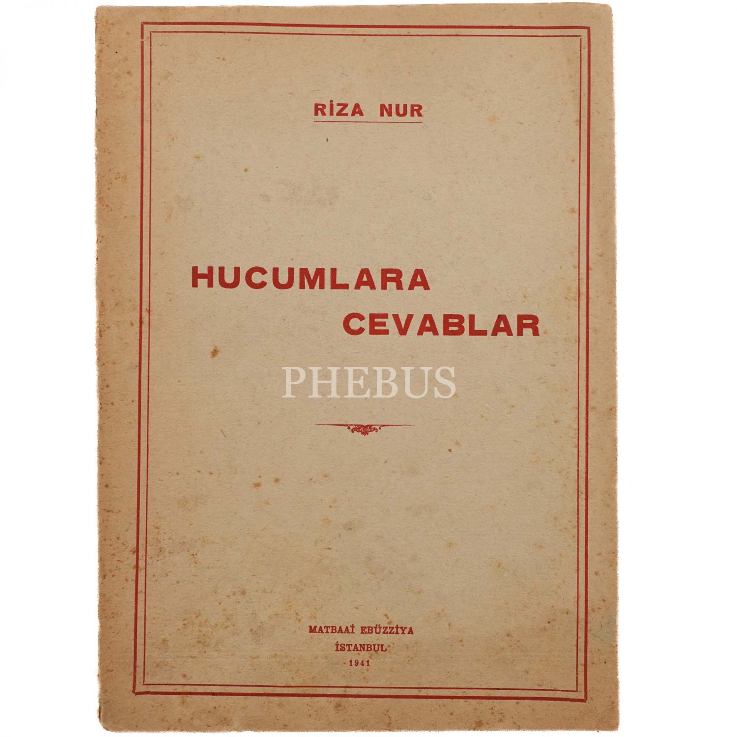 HÜCUMLARA CEVABLAR, Rıza Nur, 1941, Matbaa-i Ebüzziya, 45 sayfa, 14x19 cm...