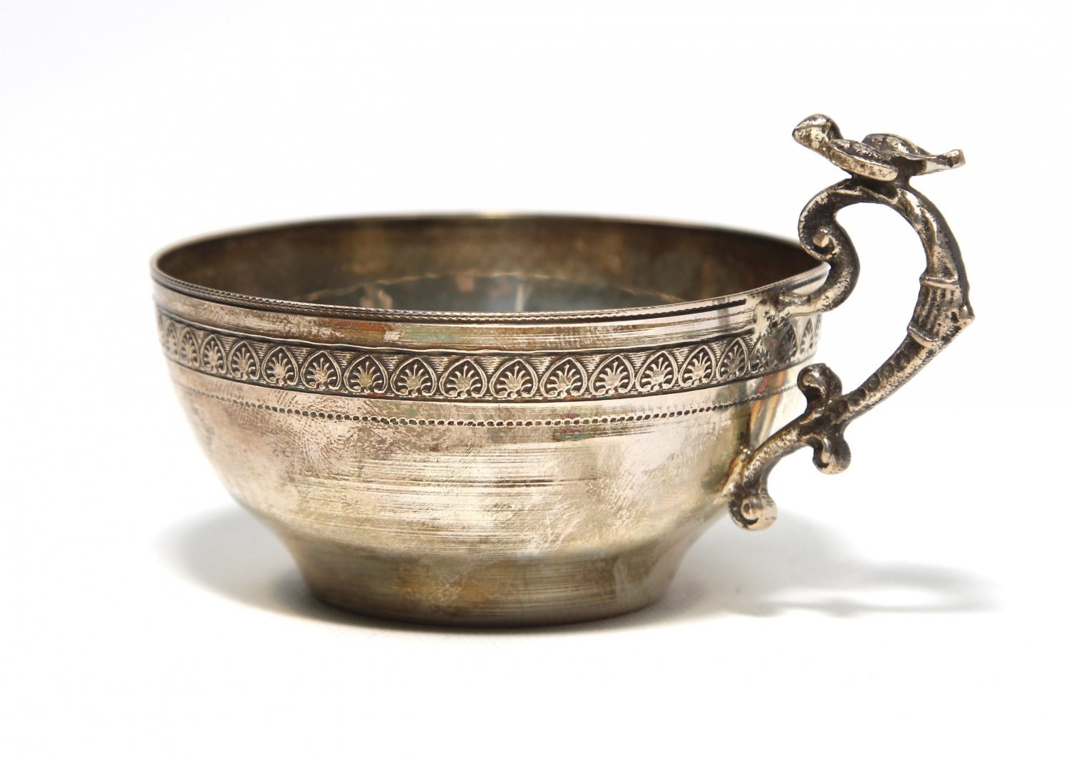 Gümüş minyatür çamçak, 900 ayar damgalı, 53 gram, 7x3,5 cm.
