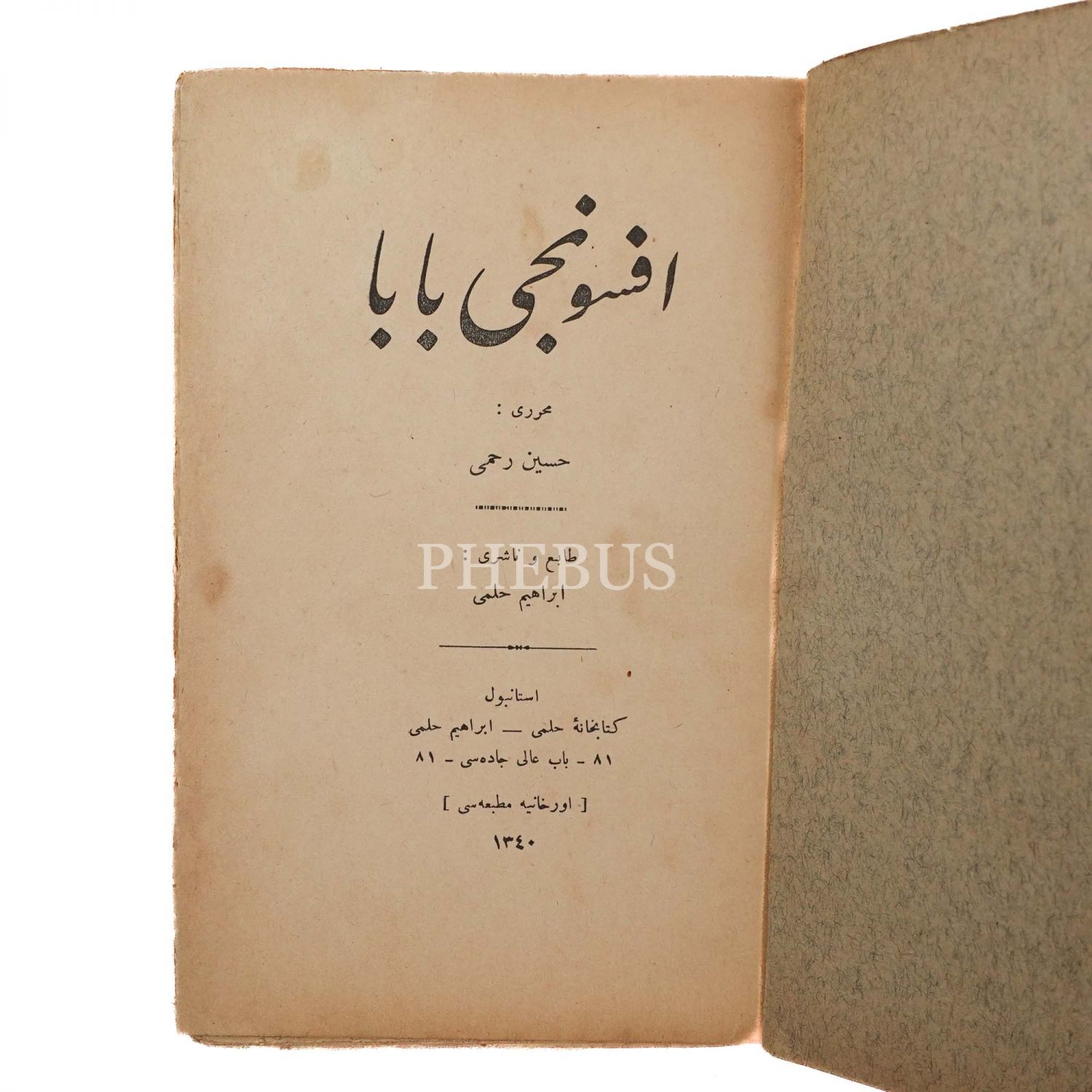 EFSUNCU BABA, Hüseyin Rahmi, 1340, Orhaniye Matbaası, 145 sayfa, 13x19 cm...