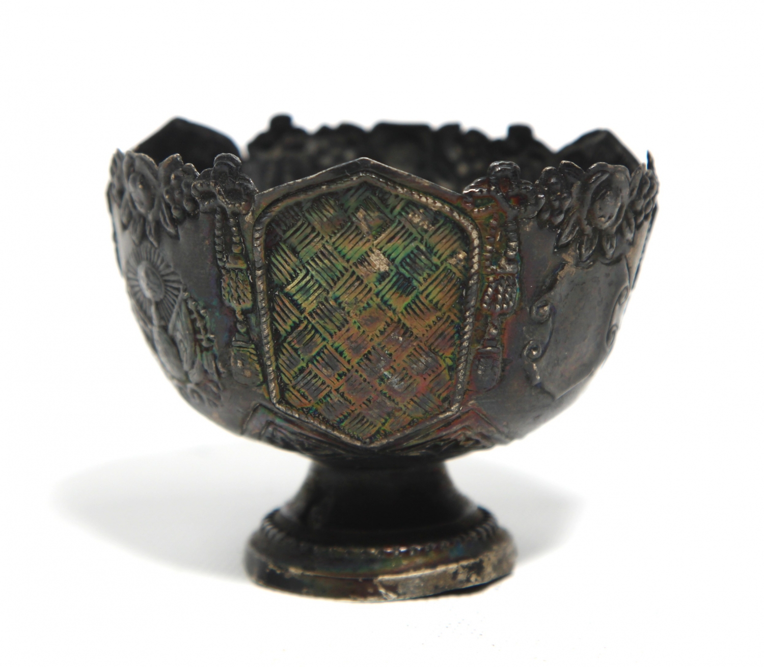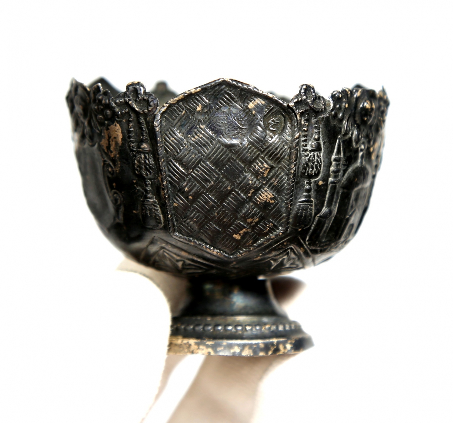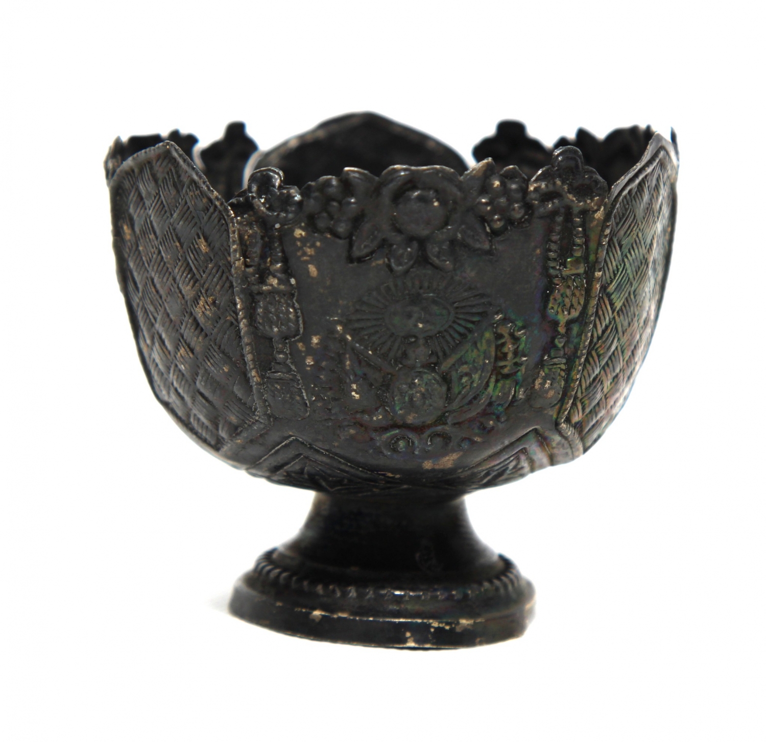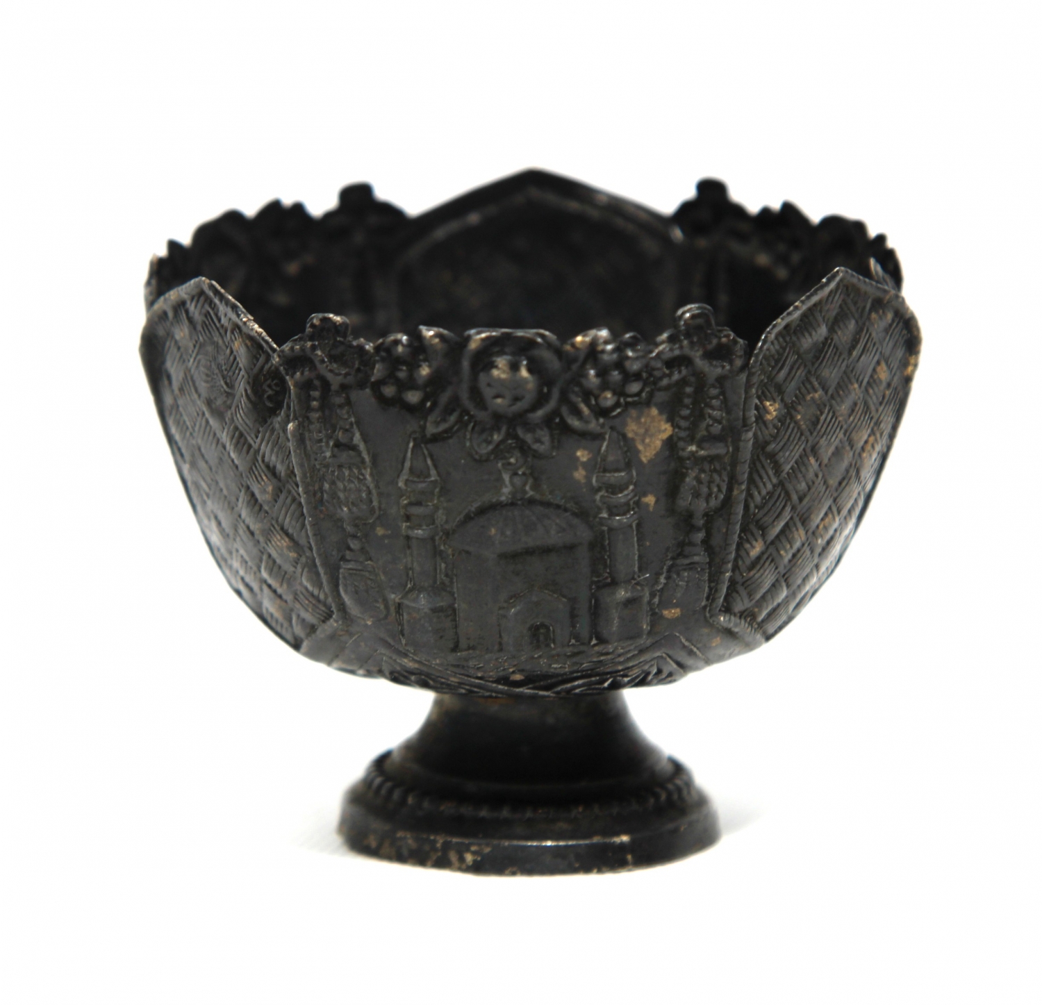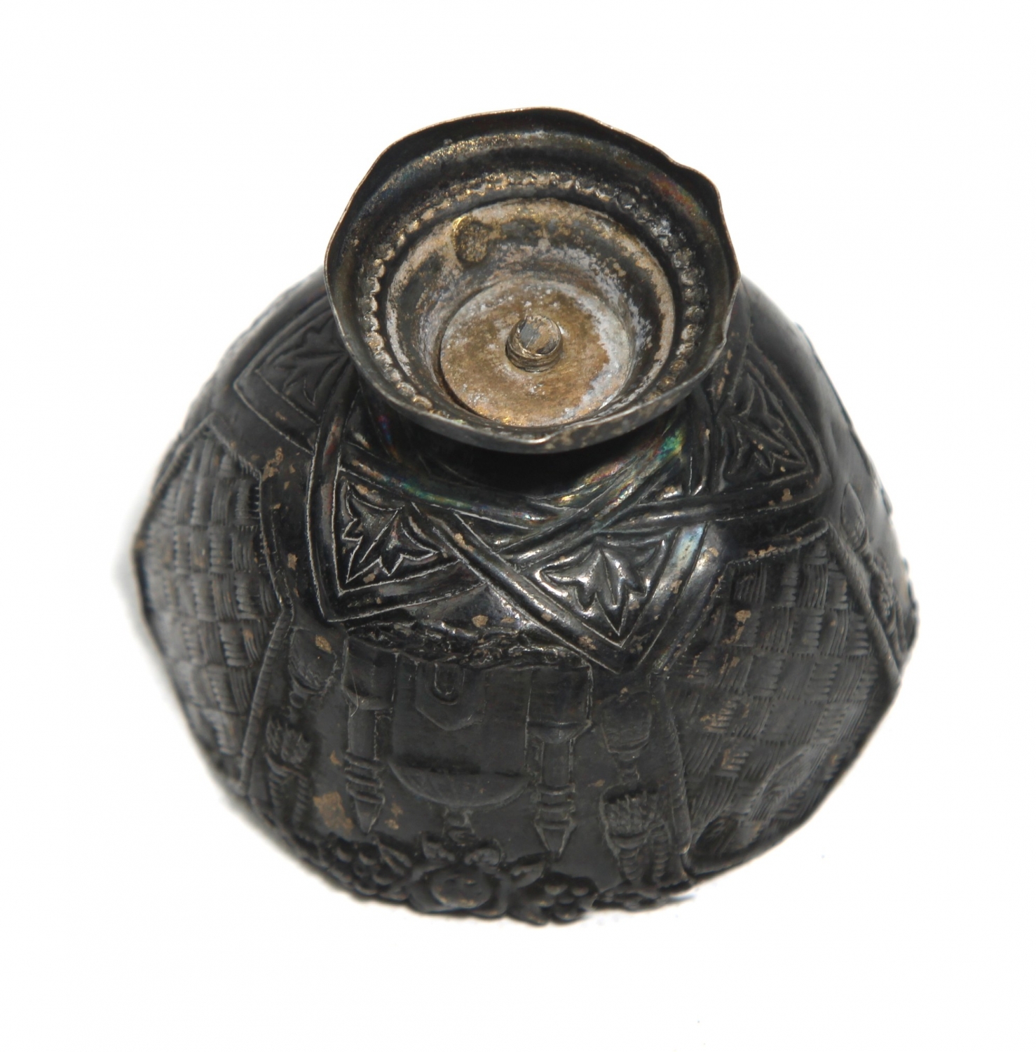 Osmanlı dönemi gümüş zarf, üzerinde Sultan Reşad tuğrası, Osmanlı devlet arması ve cami tasvirli, sahh damgalı, 5x4,5 cm.