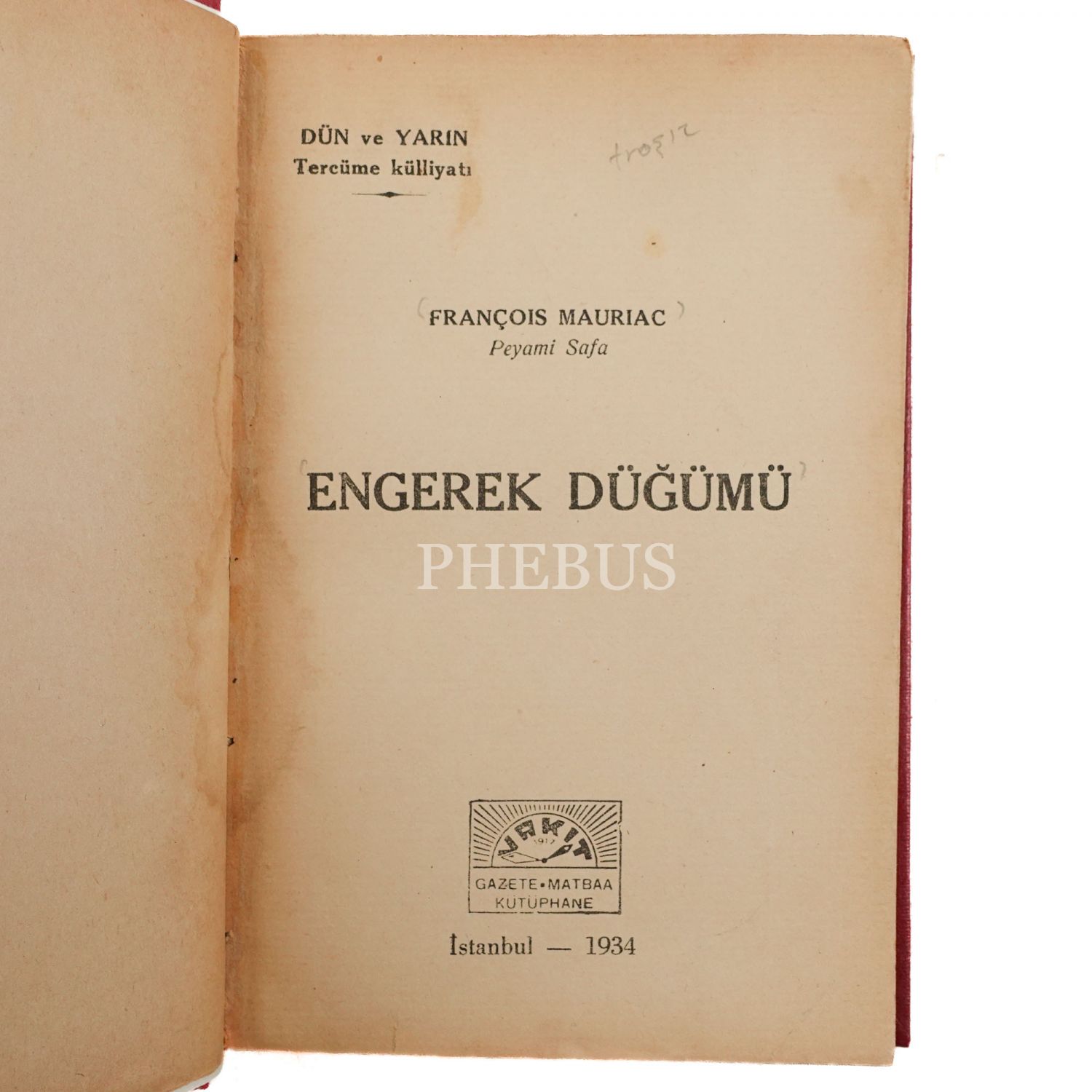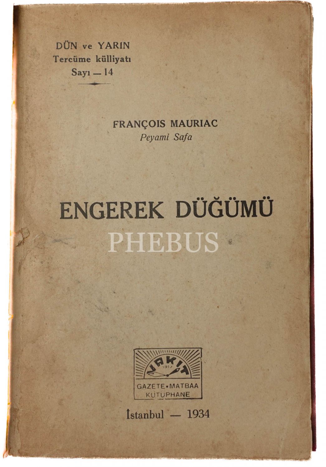 ENGEREK DÜĞÜMÜ, François Mauriac, (çeviren: Peyami Safa), 1934, Vakit Gazete Matbaa, 214 sayfa, 13x19 cm...