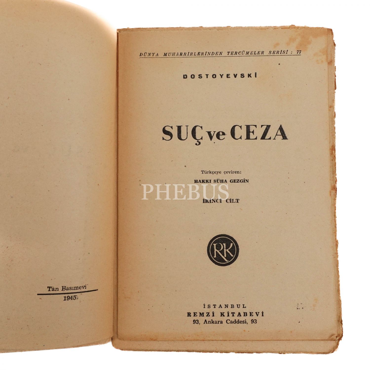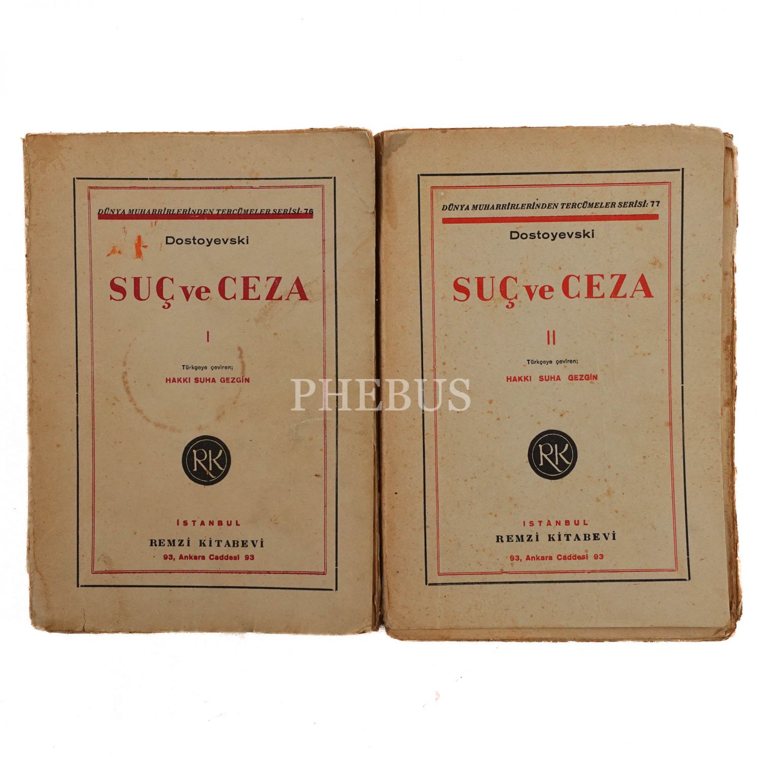 SUÇ VE CEZA (2 Cilt), Dostoyevski, (çeviren: Hakkı Suha Gezgin), 1945, Remzi Kitabevi, 15x21 cm...