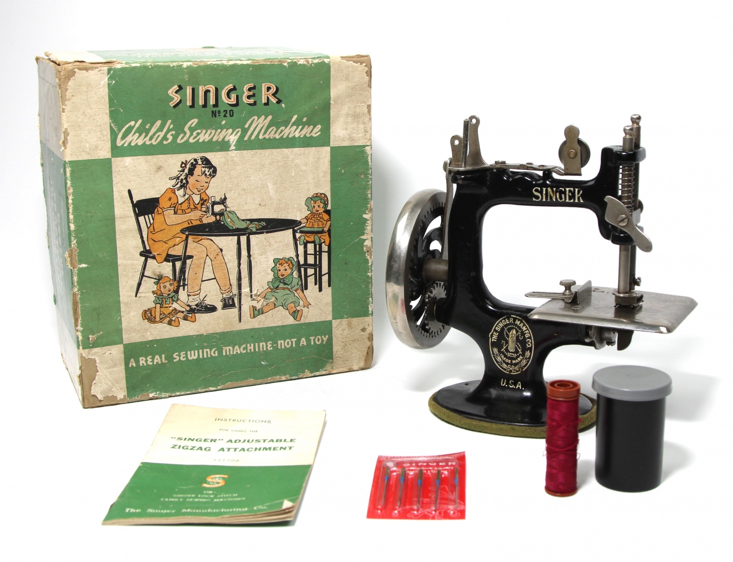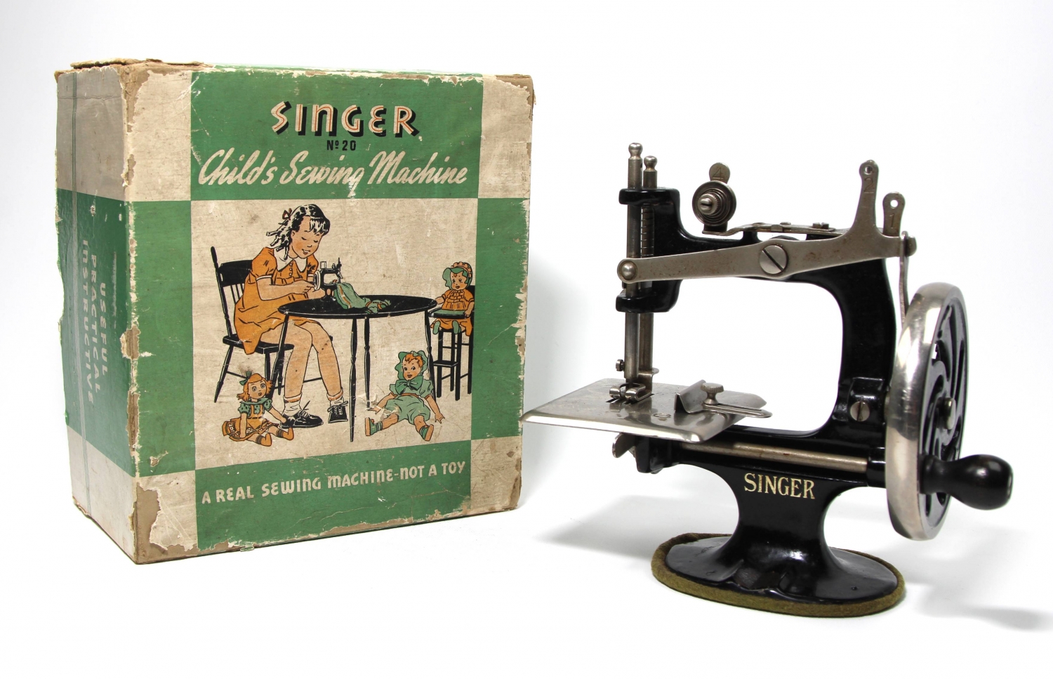 Kutunun üzerinde İngilizce 'Child's Sewing Machine' yazmaktadır.