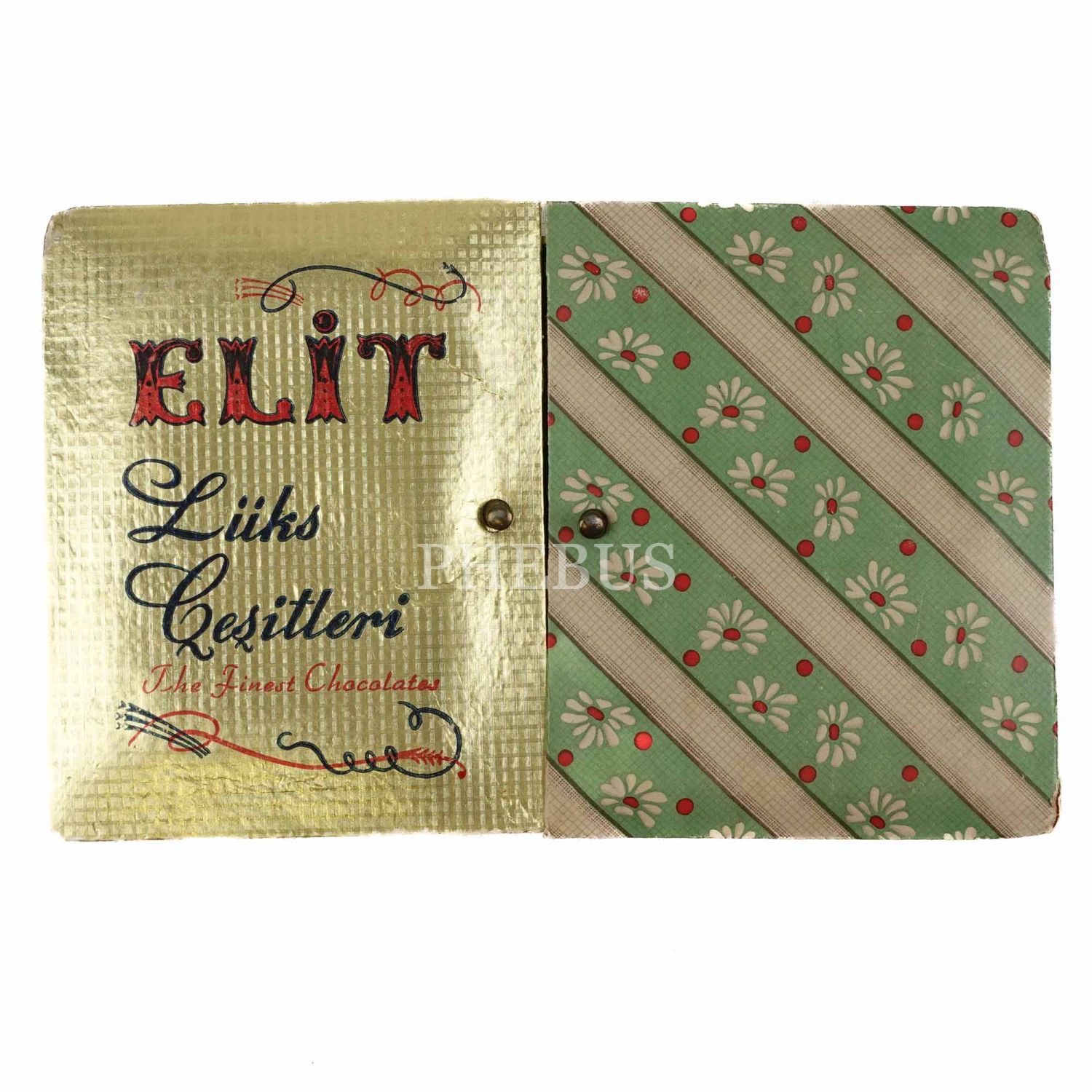 Elit Çikolata ve Şekerleme Fabrikası´ndan "Elit Lüks Çeşitleri" yazılı, çift kapaklı karton çikolata kutusu, 25x16x6 cm...