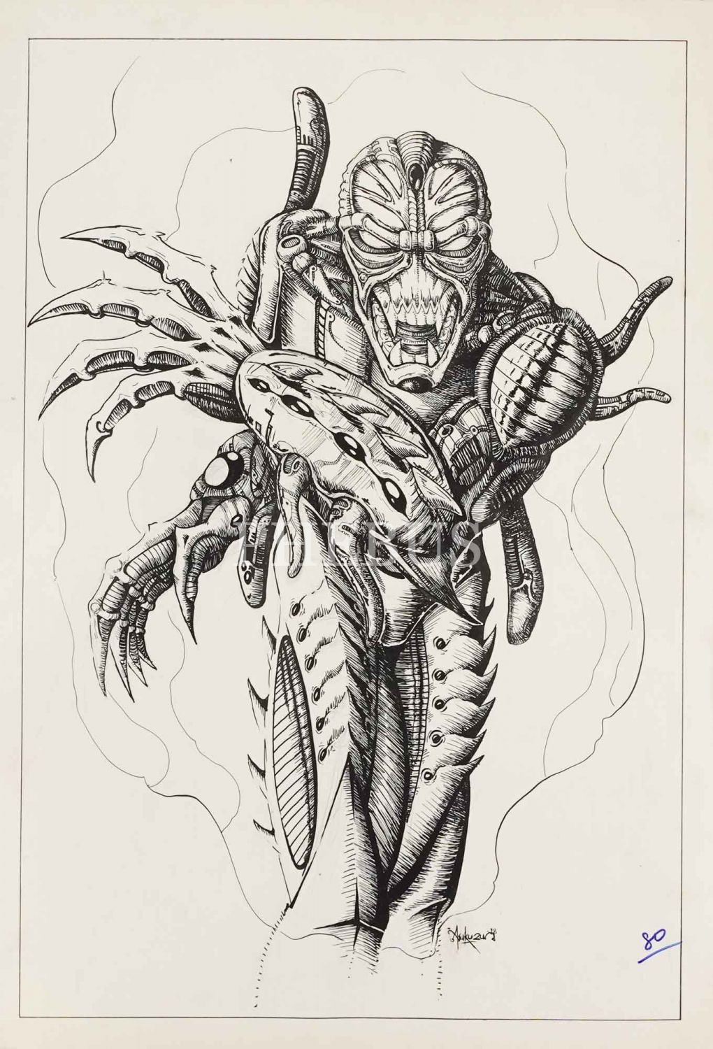 Atılgan Aşıkuzun imzalı, fantastik temalı orijinal çizim, 35x50 cm...
