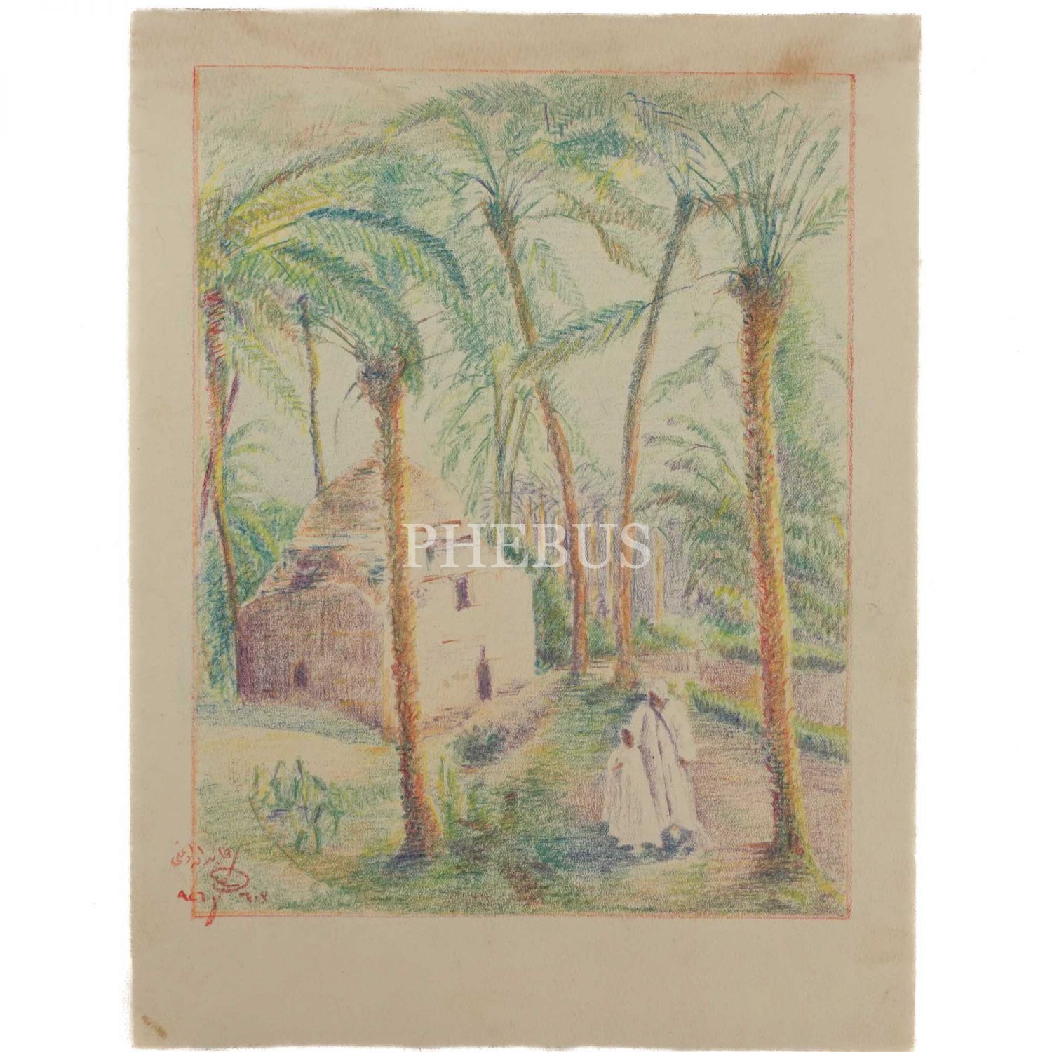 Kapudanoğlu Esad imzalı, hurma bahçesi çizimi, 1926, 21 x 28 cm...