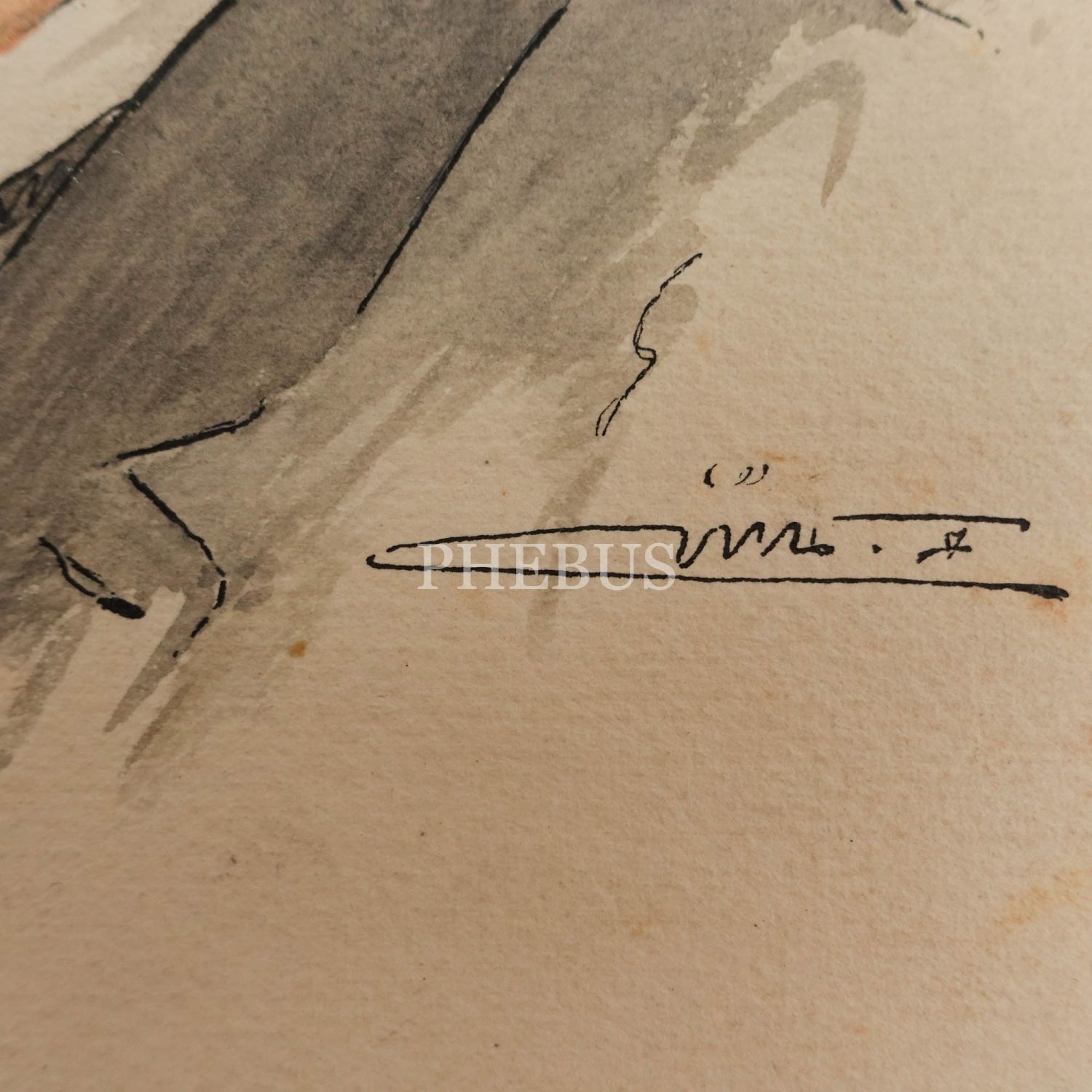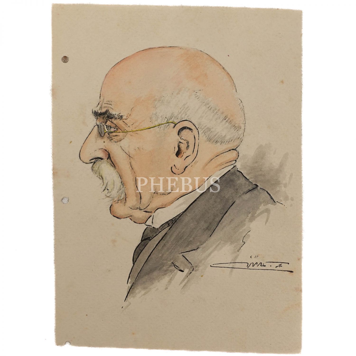 A. Kemaleddin imzalı, sulu boya portre, 14x19 cm...