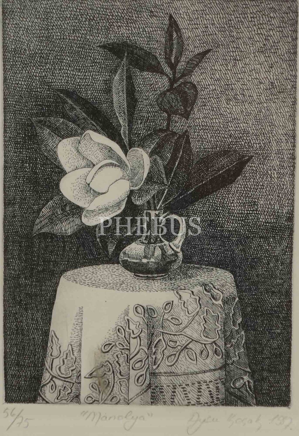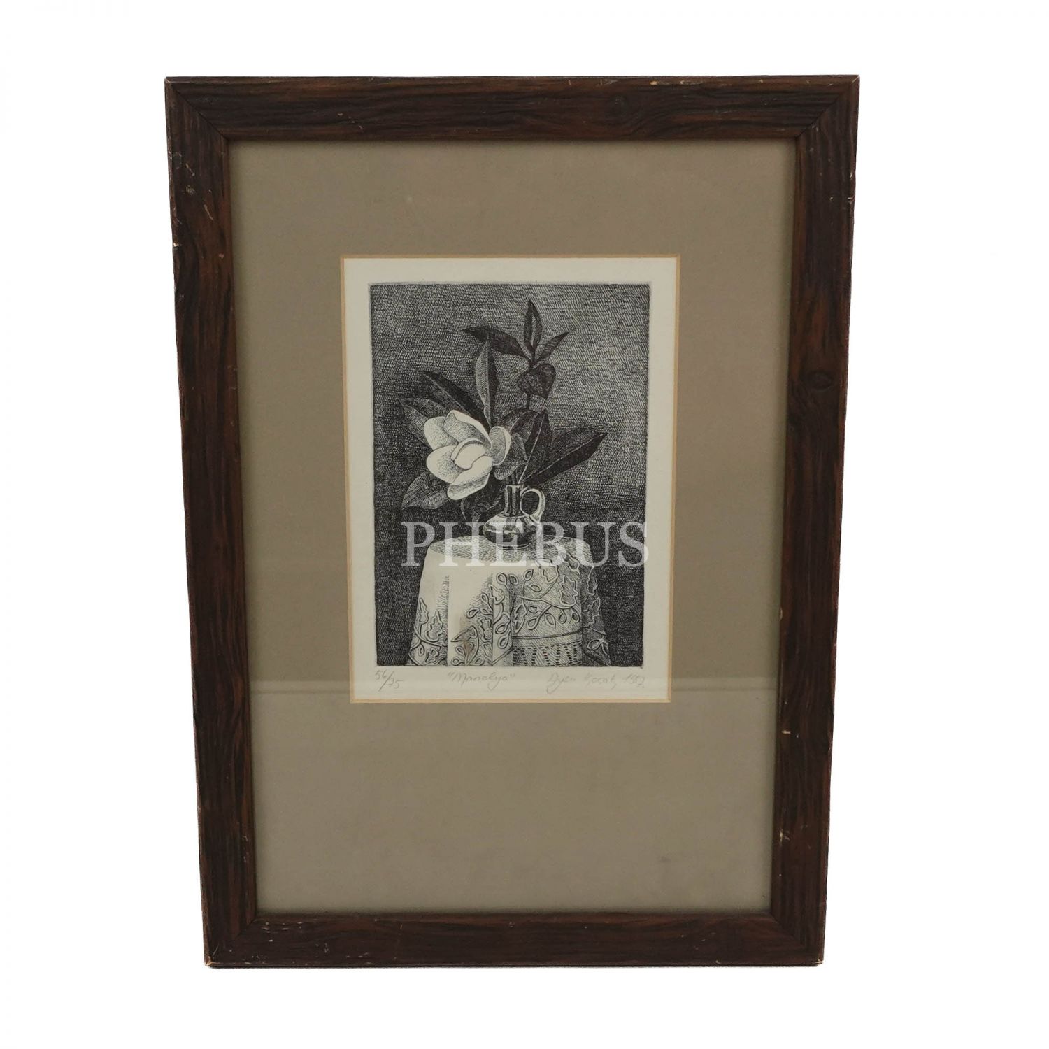 Aysu Koçak´ın "Manolya" isimli natürmort çalışmasının imzalı özgün baskısı, 56/75 edisyon, 14x20 cm, çerçeve 29x40 cm...