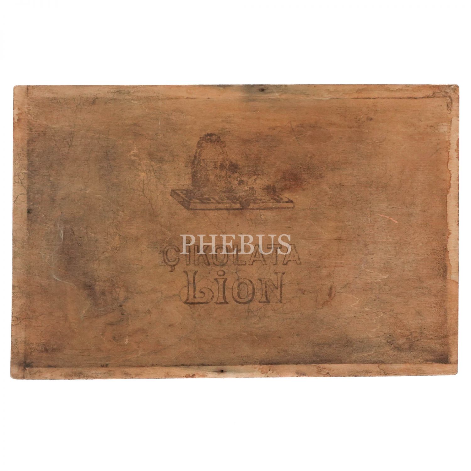 "Çikolata Lion" ibareli ahşap kutu kapağı, 36x24 cm...