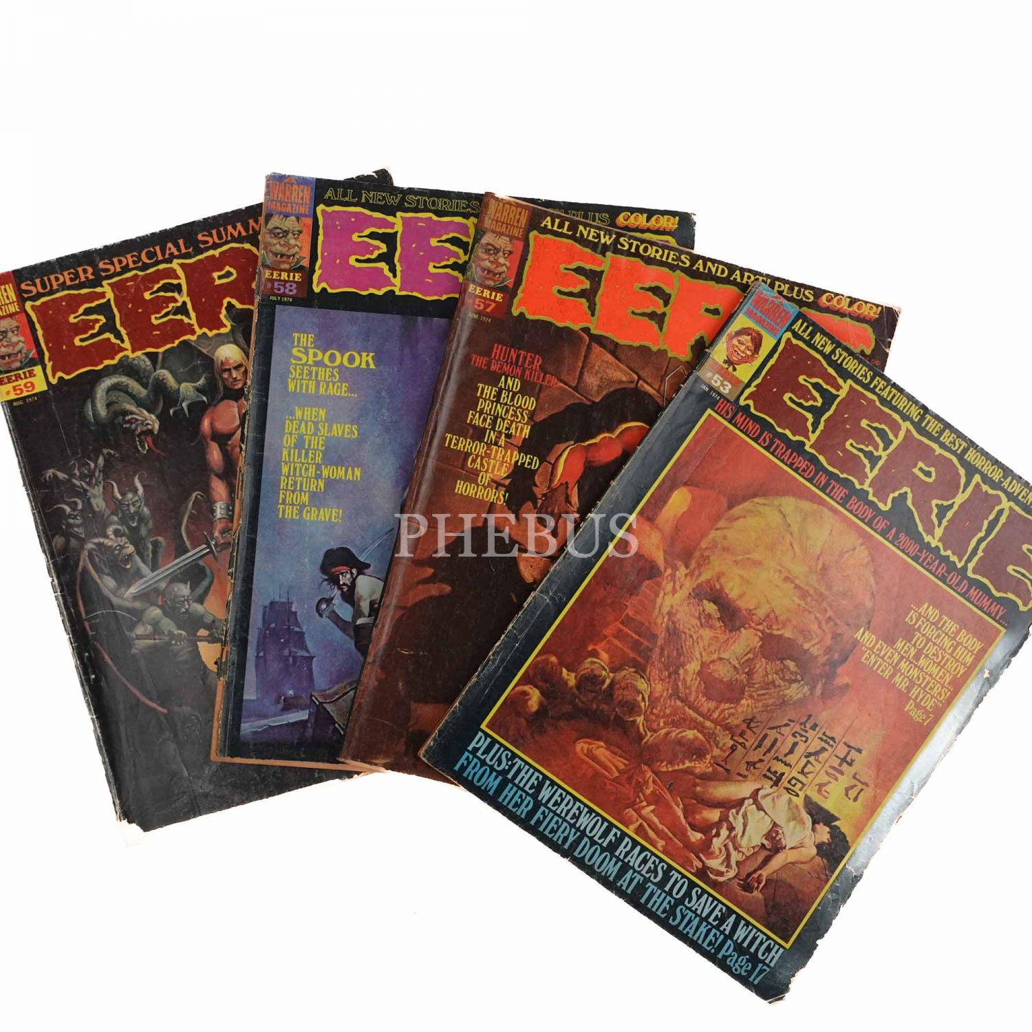 4 adet EERIE macerası, sayılar: 53-57-58-59, 1974, A Warren Magazine, 21x28 cm...