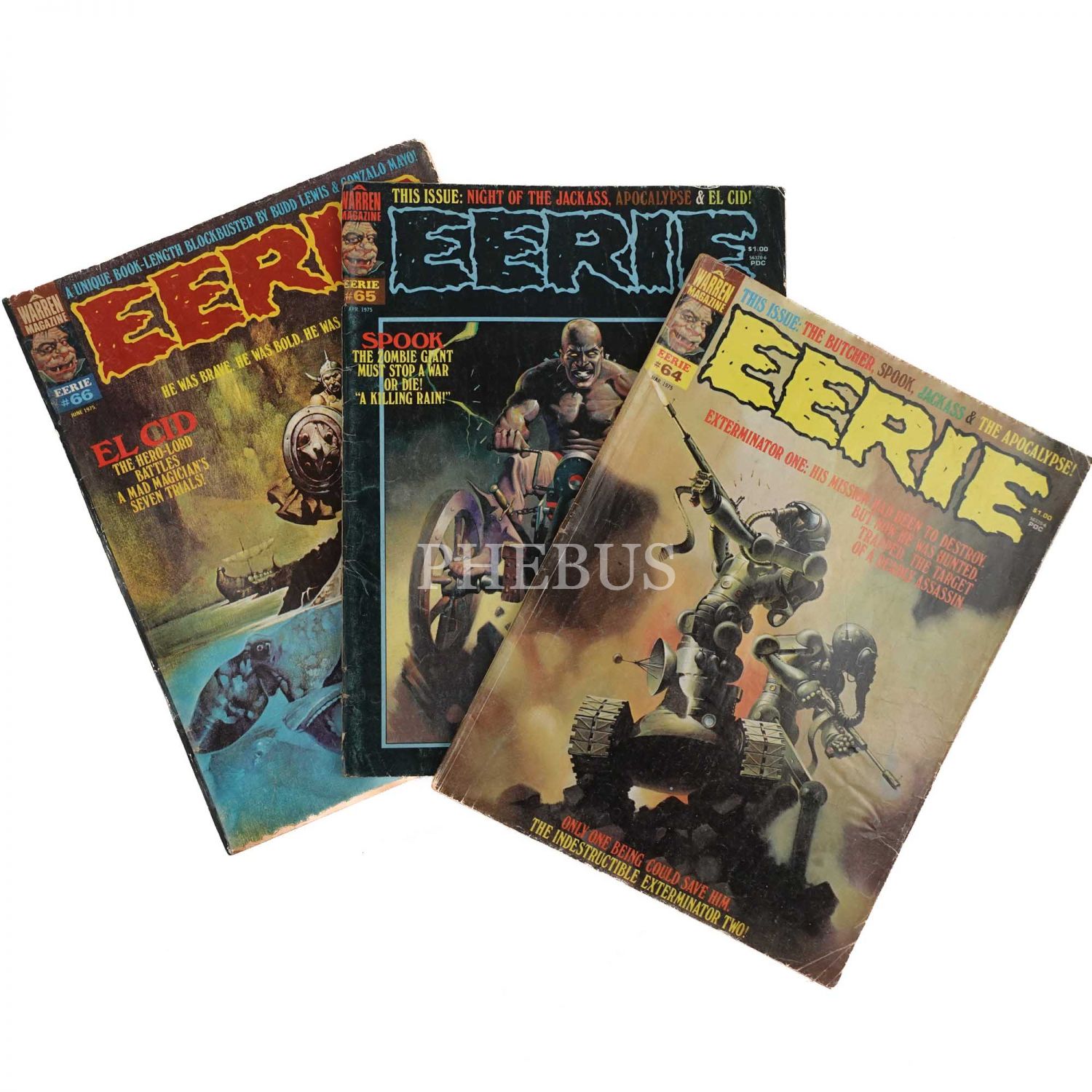 3 adet EERIE macerası, sayılar: 64-65-66, 1975, A Warren Magazine, 21x28 cm...