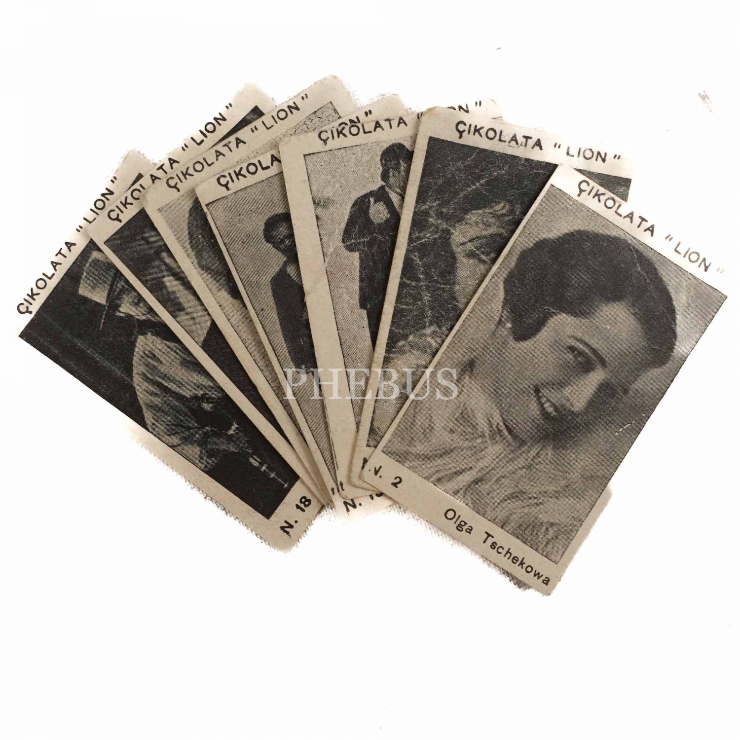 Arslan markalı "Lion" çikolatasının artist serisinden 7 adet kart, 4x6,5 cm...