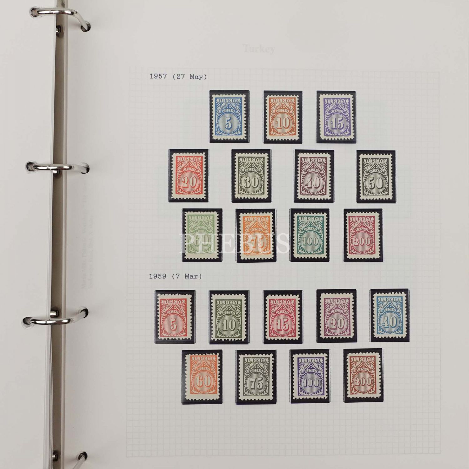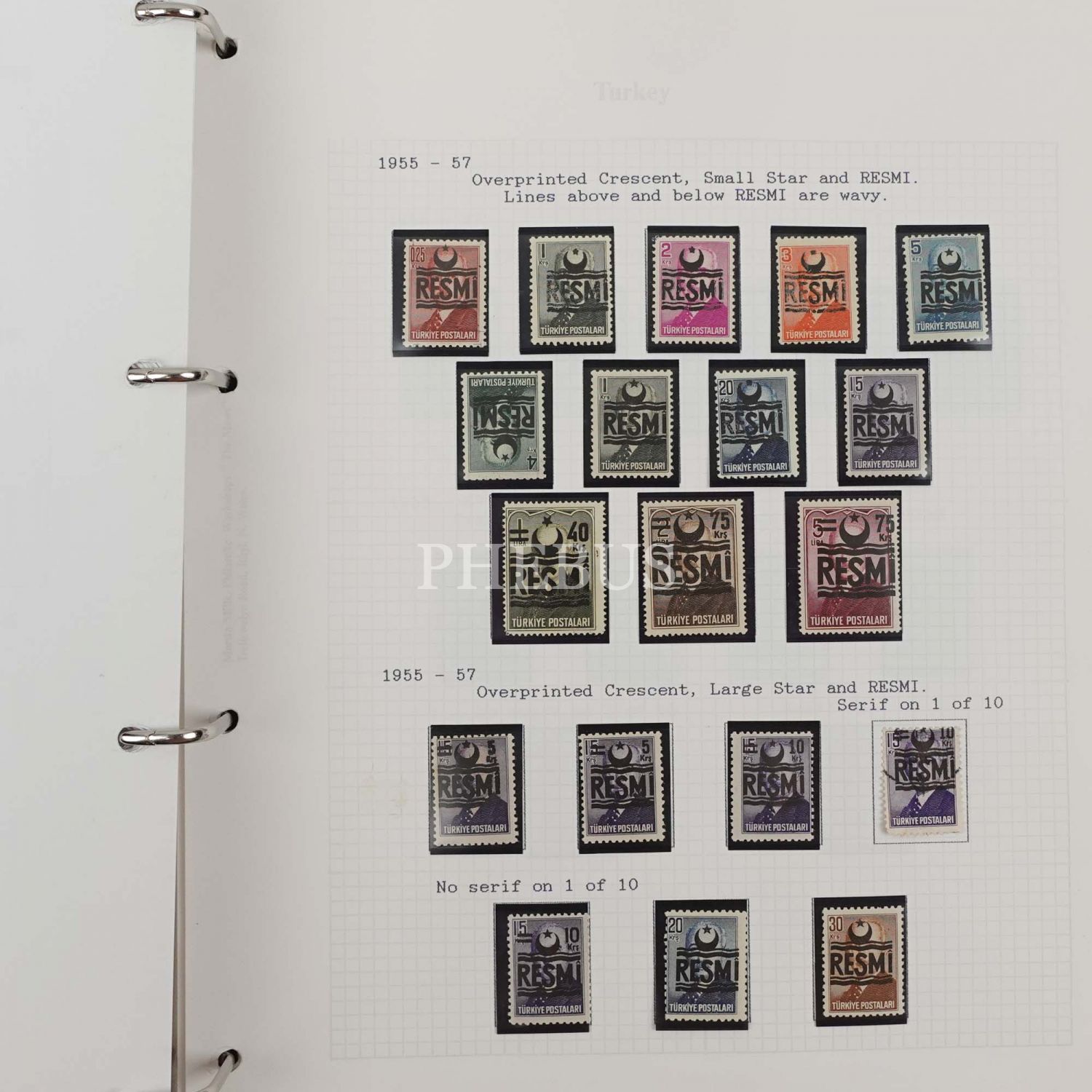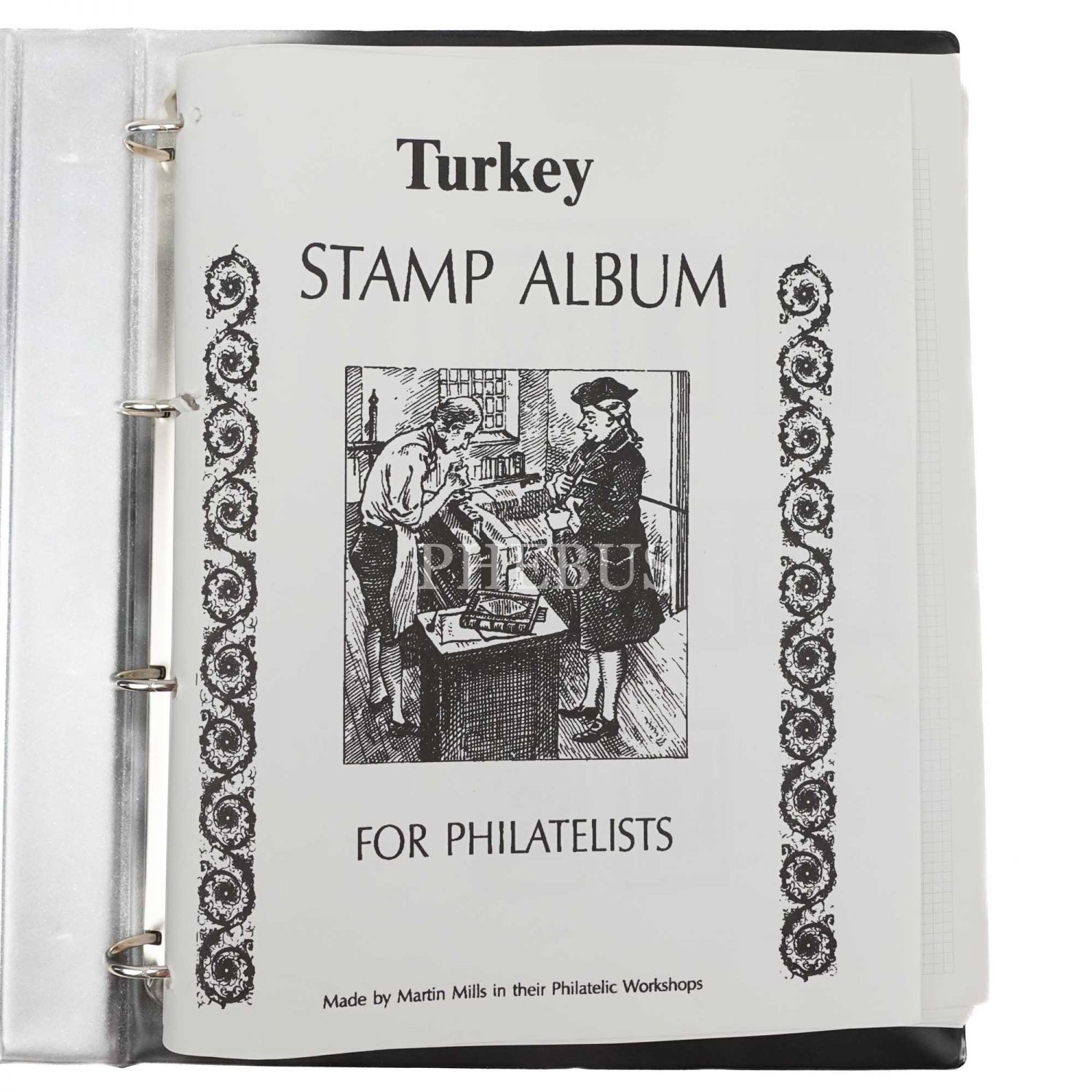 İlk sayfasında şu ibareleri taşıyan bir künye mevcuttur: "Turkey Stamp Album (For Philatelists) - Made by Martin Mills in their Philatelic Workshops"