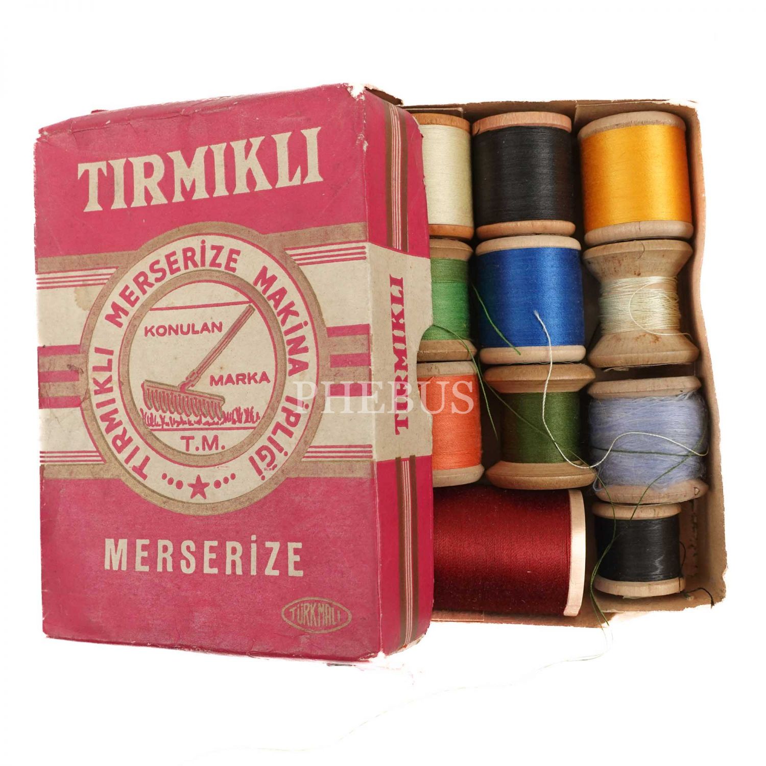 Orijinal kutusunda "Tırmıklı" marka "Tırmıklı Merserize Makina İpliği", içinde 11 adet iplik mevcuttur, 9x13x3 cm...