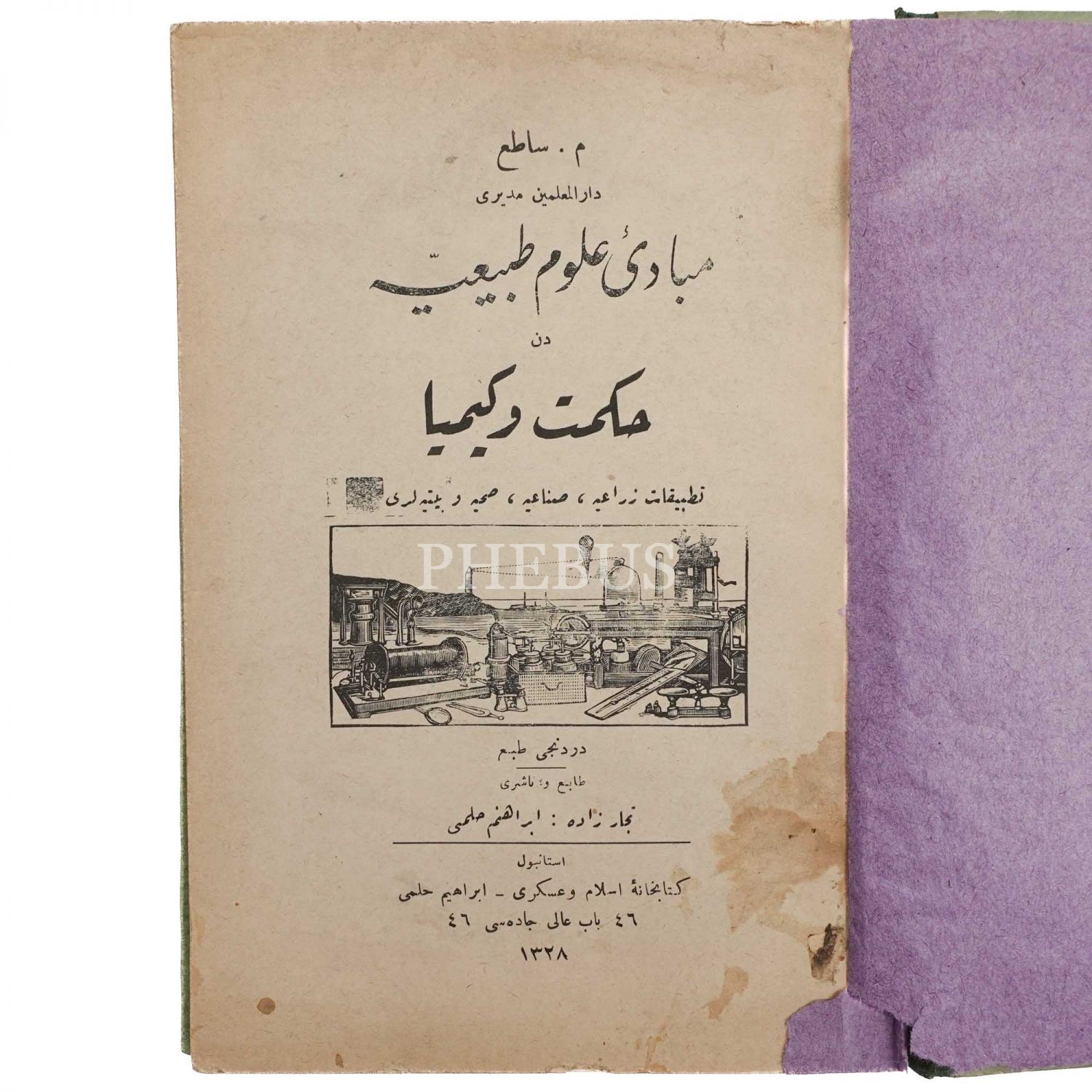 MEBADİ-İ ULUM-İ TABİYEDEN HİKMET VE KİMYA, Mustafa Satı el-Husrî, 1328, Matbaa-i Hayriye ve Şürekâsı, 207 sayfa, 14x20 cm...
