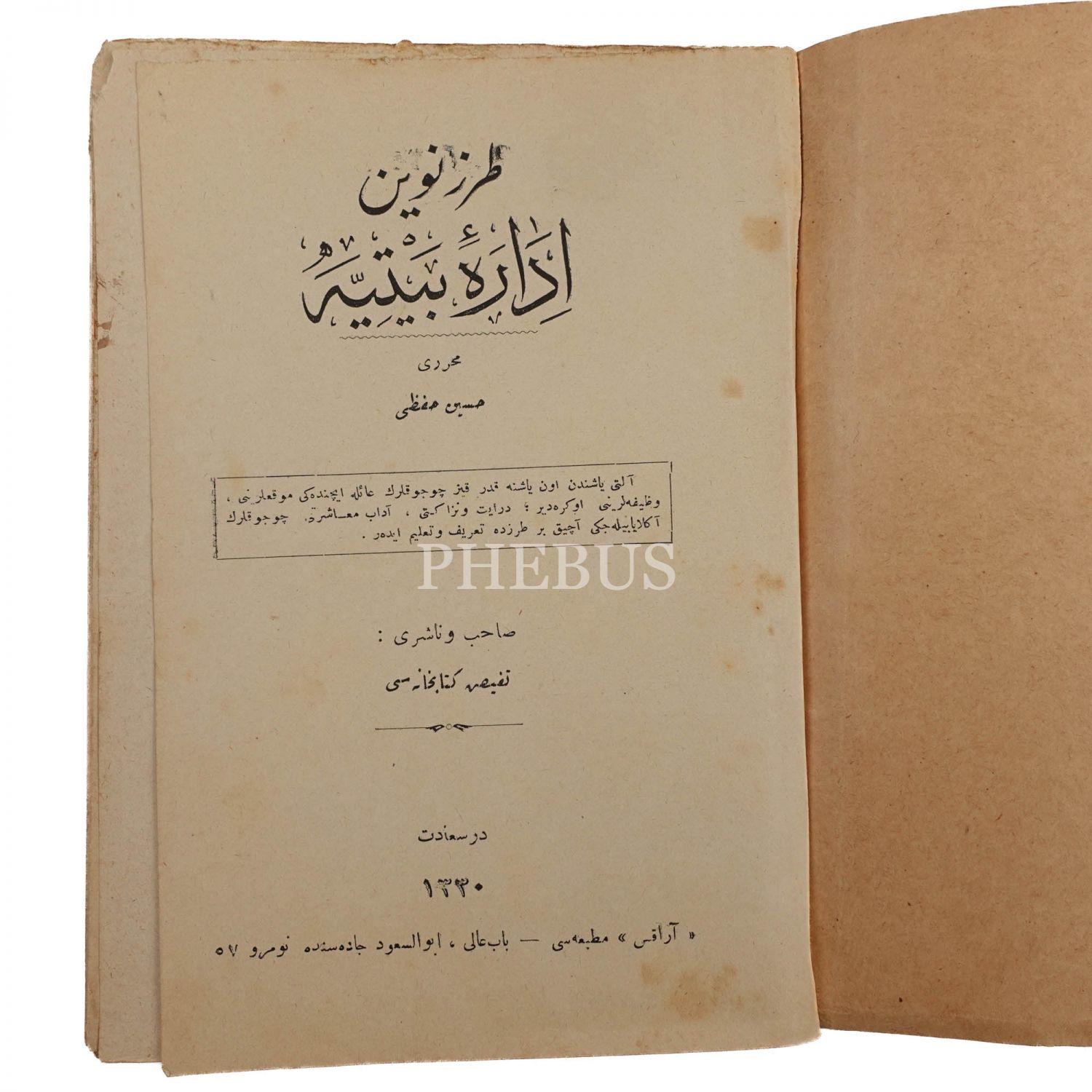 TARZ-I NEVİN İDARE-İ BEYTİYE, Hüseyin Hıfzı, 1330, Araks Matbaası, 95 sayfa, 13x18 cm...