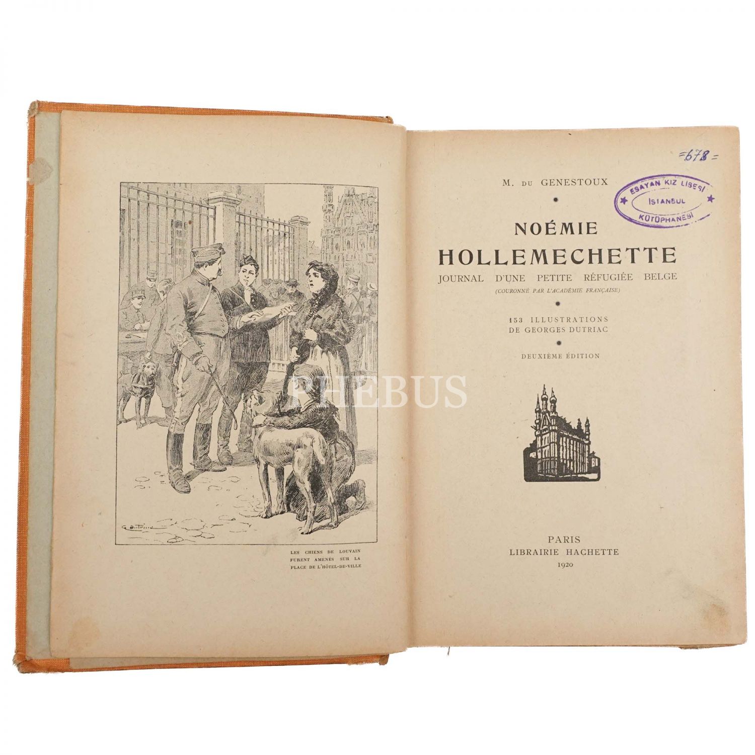 NOEMIE HOLLEMECHETTE, M. Du Genestoux, 1920, Librairie Hachette (Paris), 182 sayfa, 17x26 cm...