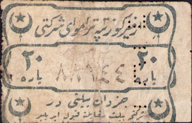 Nadir bilet, İzmir Göztepe Tramvay Şirketi cüzdan bileti, ay-yıldızlı, 6x4 cm.