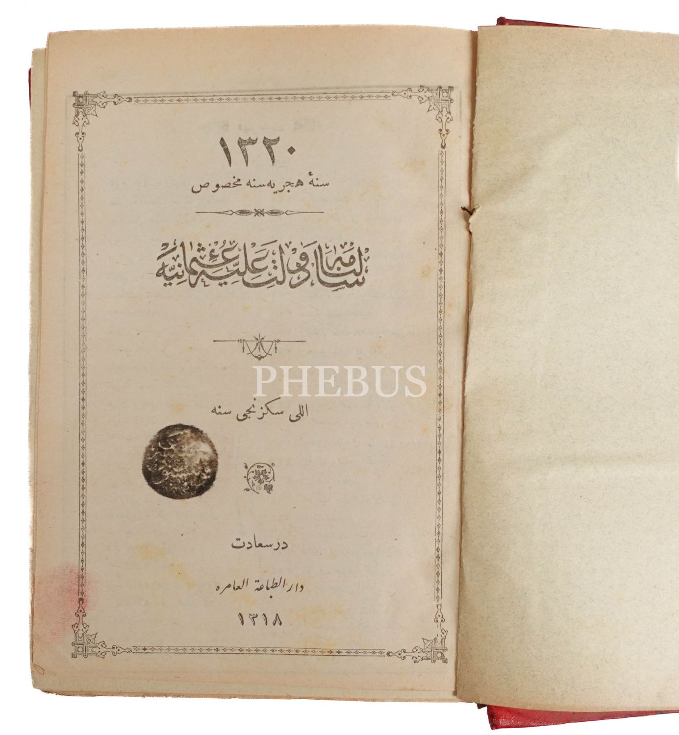 1323 SENE-İ HİCRİYESİNE MAHSUS SALNAME, 1321, Matbaa-i Ahmet İhsan, 1041 sayfa, 14x20 cm...