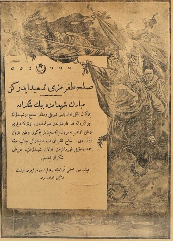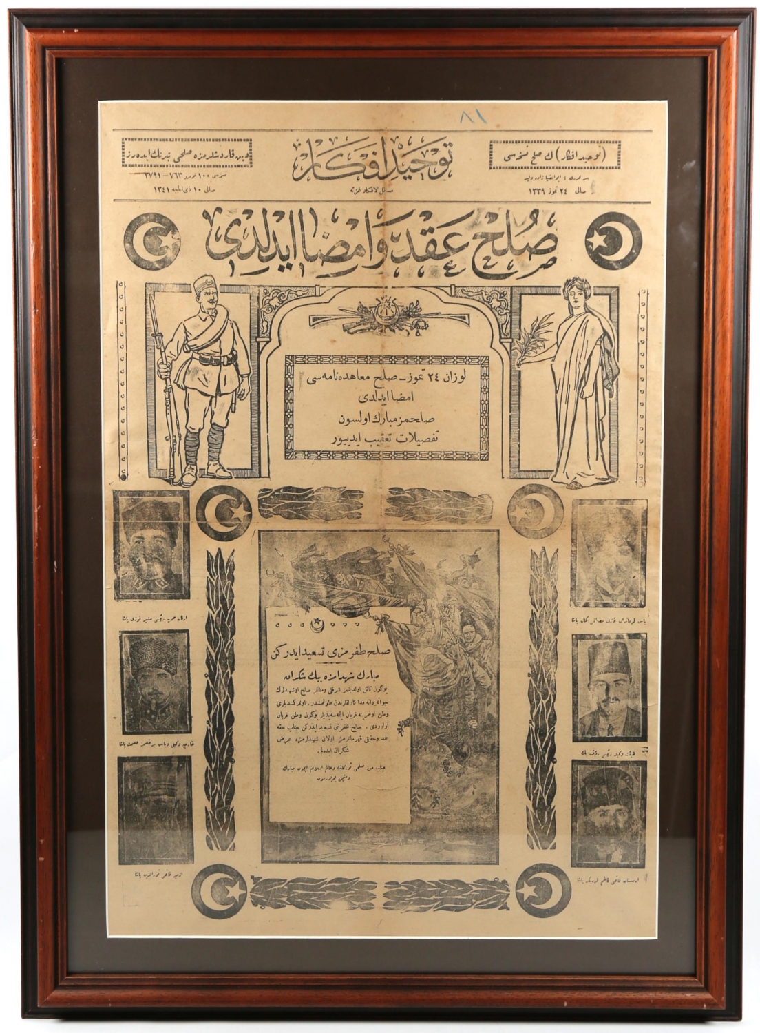 Tasvir-i Efkar'ın Lozan Antlaşması Nüshası, 'Lozan 24 Temmuz Muahedenamesi İmza Edildi, Sulhumuz mübarek olsun', 24 Temmuz 1339 tarihli, çerçeveli, 40x60 cm.