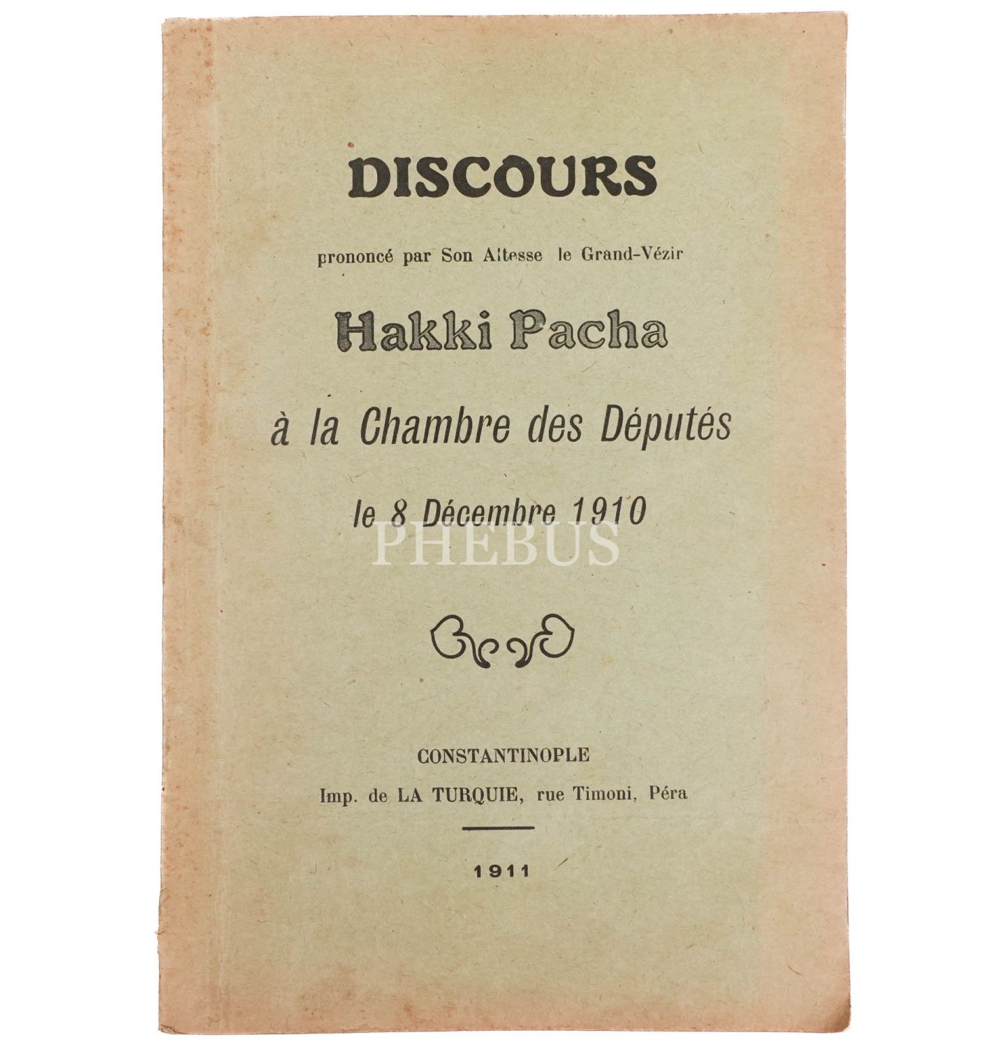 DISCOURS prononce par Son Altesse le Grand-Vezir HAKKI PACHA a la Chambre des Deputes le 8 Decembre 1910, 1911, Imp. de La Turquie, rue Timoni, Pera, Constantinople, 90 sayfa, 16x24 cm...