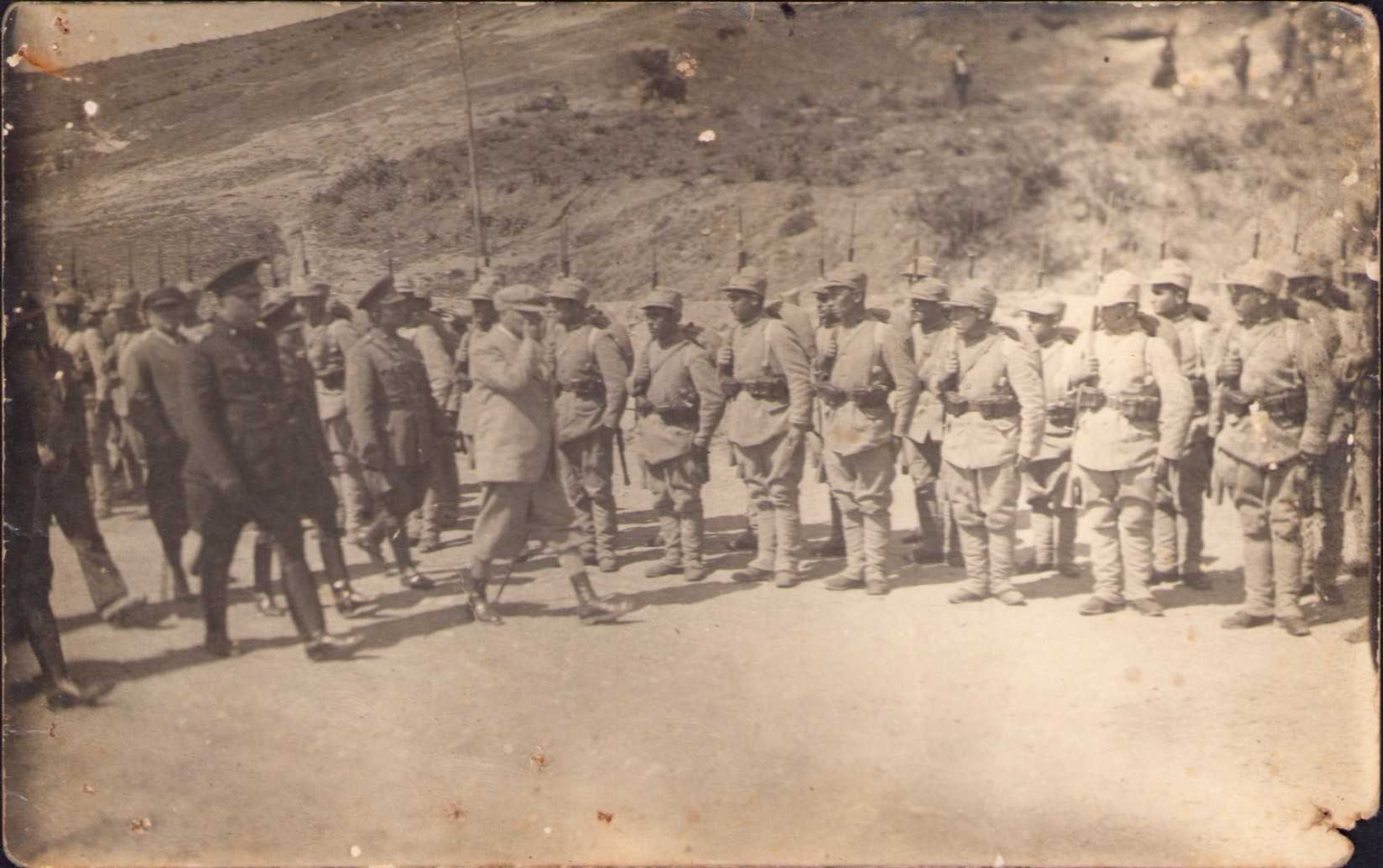 Mustafa Kemal Atatürk'ün askeri birliğin önünden geçerken çekilmiş fotoğrafı, 14x9 cm.