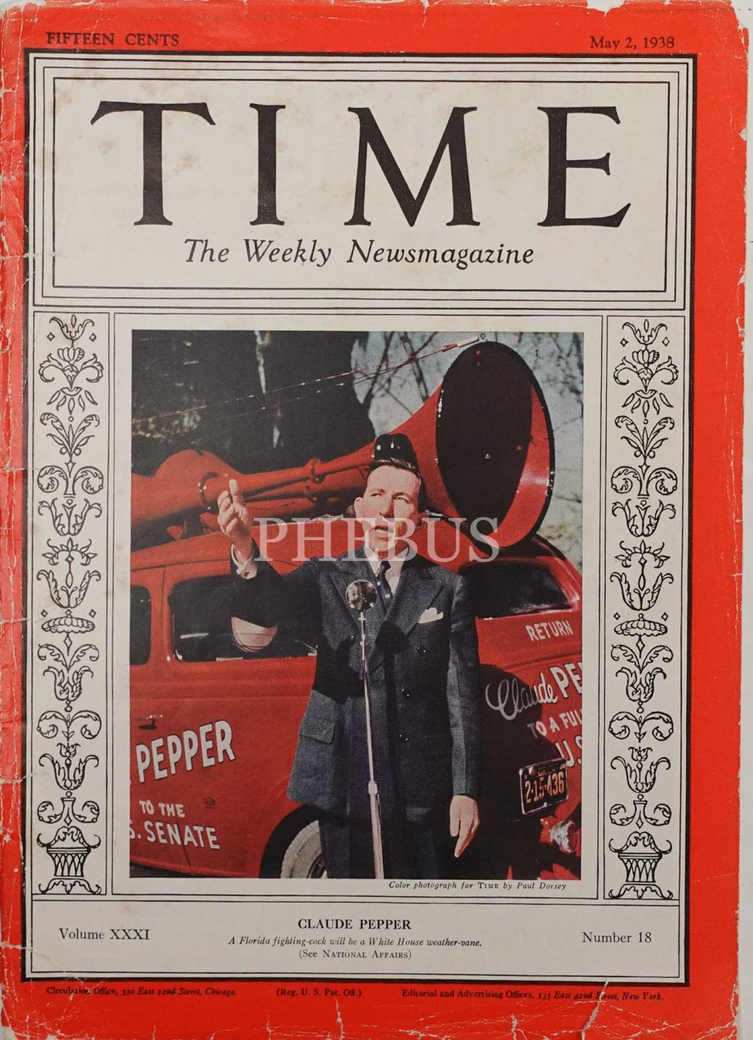 ABD Senatörü Claude Pepper´ı kapağına taşıyan TIME dergisi, 2 Mayıs 1938, 21x28 cm...