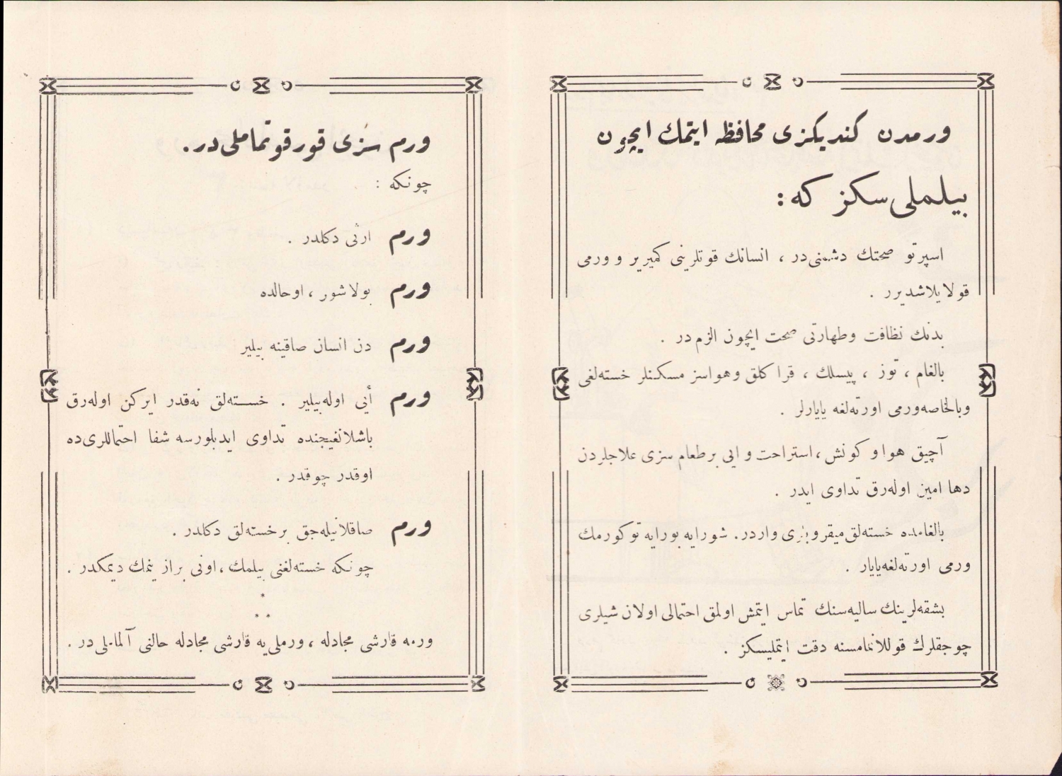Verem Mücadele Cemiyeti Broşürü, 'Veremden Kendinizi Kormak İçün Bilmelisiniz ki', 4 sayfa, Osmanlıca, 21x14,5 cm.