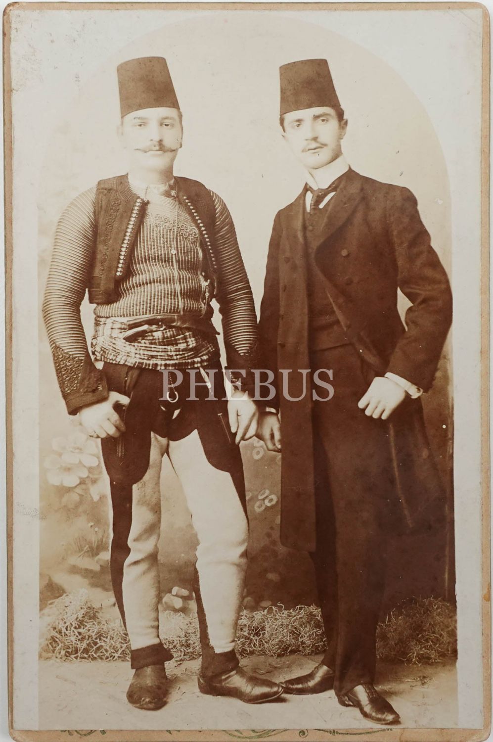 Yöresel ve modern kıyafetli iki beyefendinin kabin fotoğrafı, 11x17 cm...