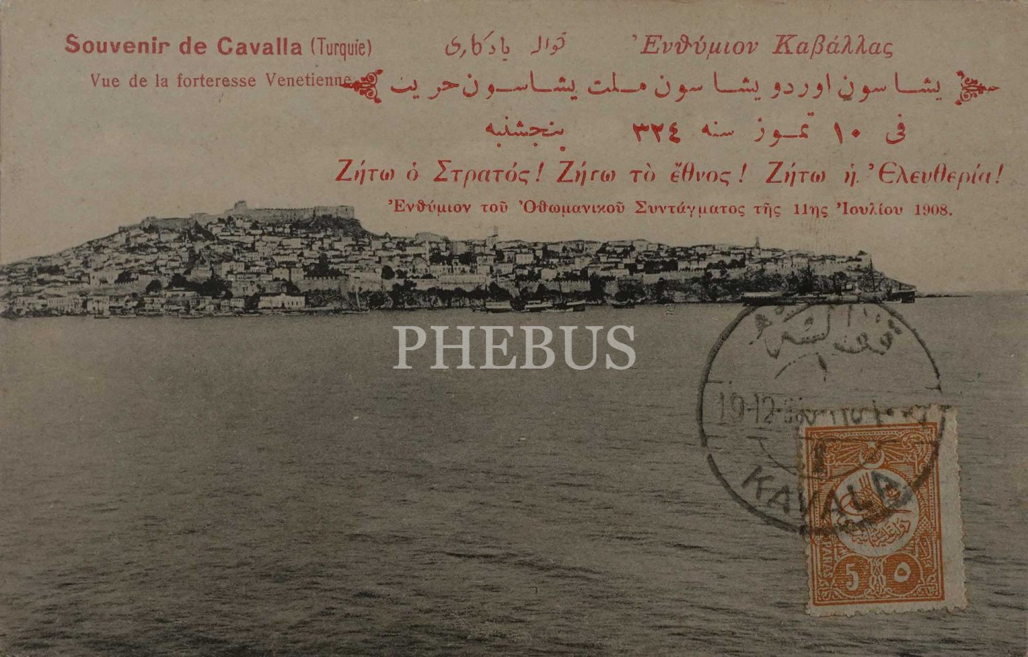 Kavala - Venedik Kalesi´nin denizden görünümü, "Souvenir de Cavalla (Turquie) - Vue de la forteresse Venetienne", ed. Librairie-Papeterie ´le Soleil´ Cavalla, 14x9 cm...