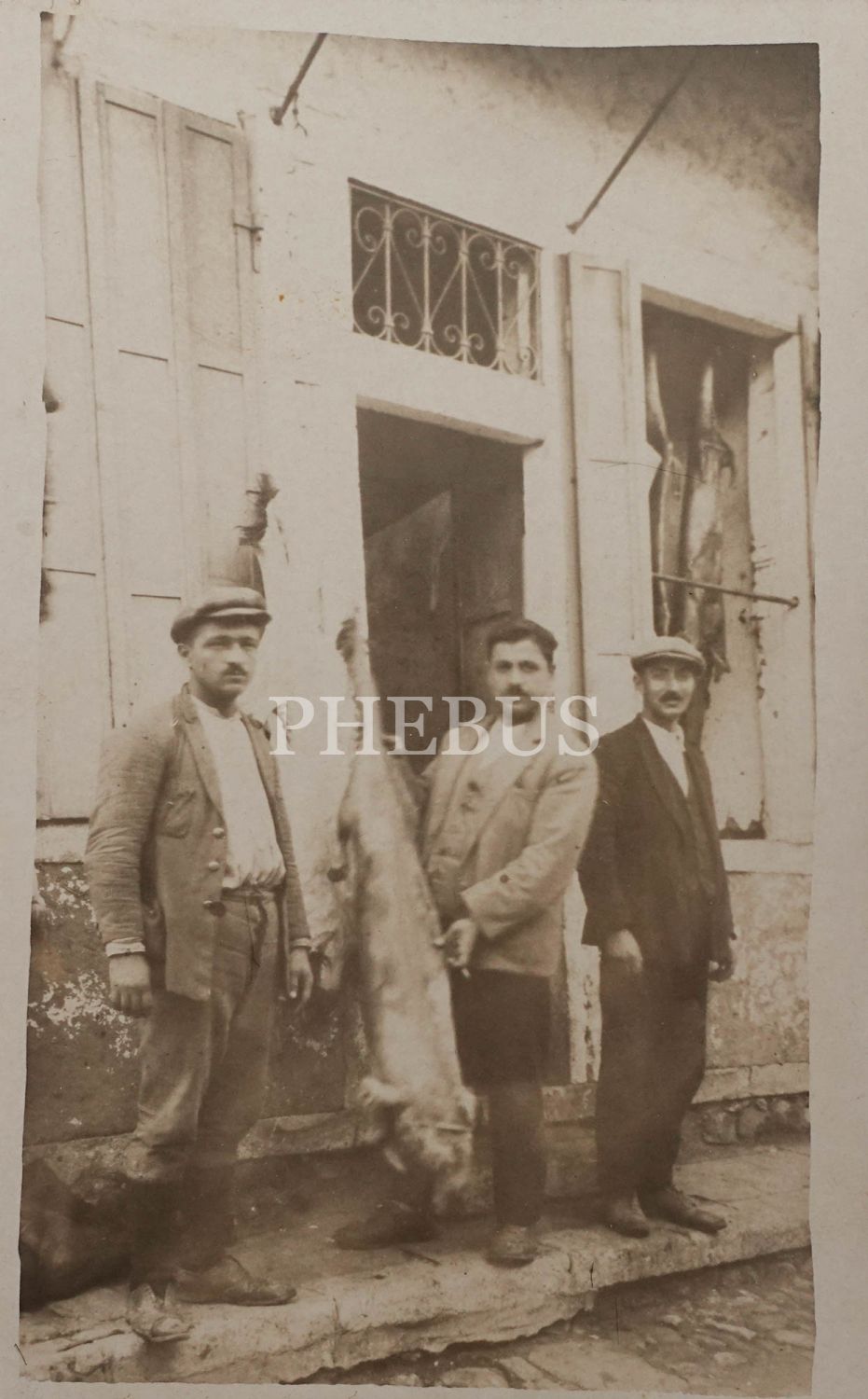 Erken Cumhuriyet döneminden dükkanları önünde poz veren kasaplar, 9x14 cm...