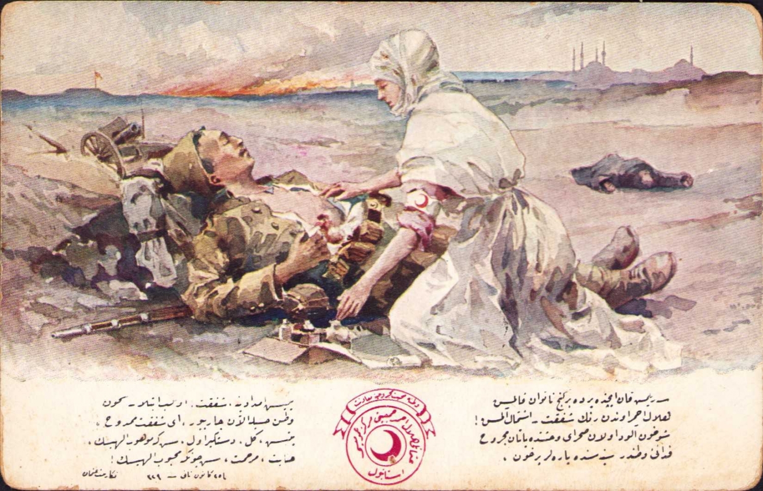 Osmanlı Hilal-i Ahmer Cemiyeti kartpostal, Doktor Besim Ömer'den [Akalın] imzalı ve ithaflı, 14x9 cm.