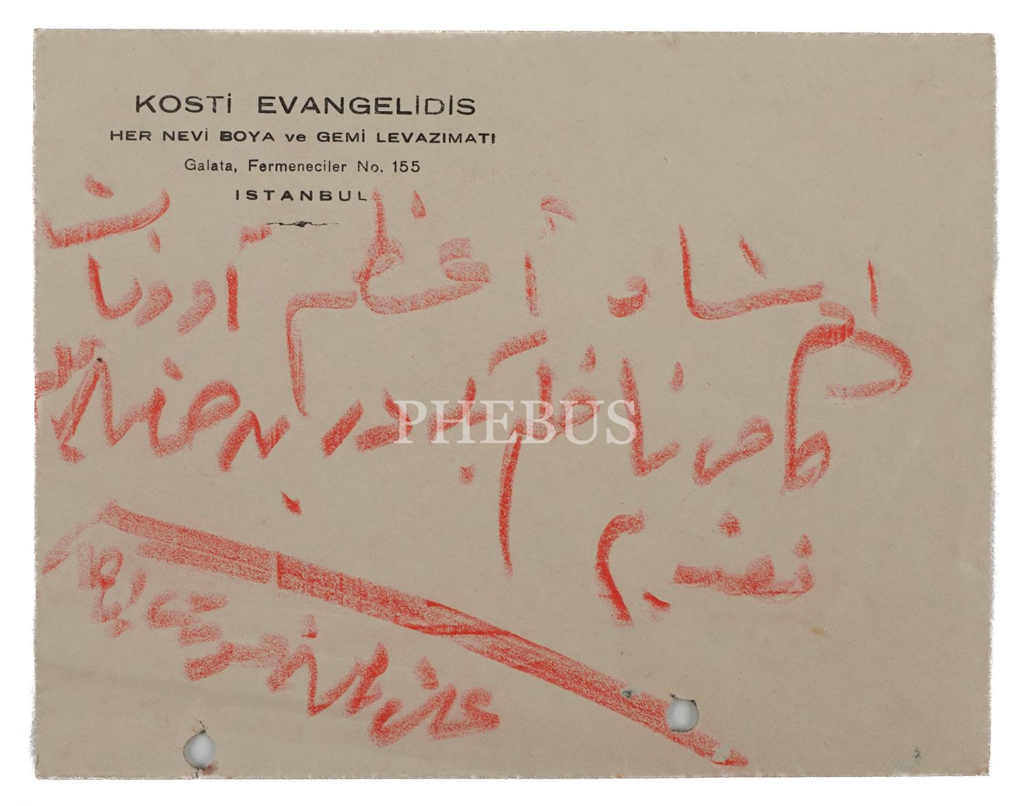 Kosti Evangelidis -Her Nevi Boya ve Gemi Levazımatı- İstanbul antetli zarf, 16x13 cm...
