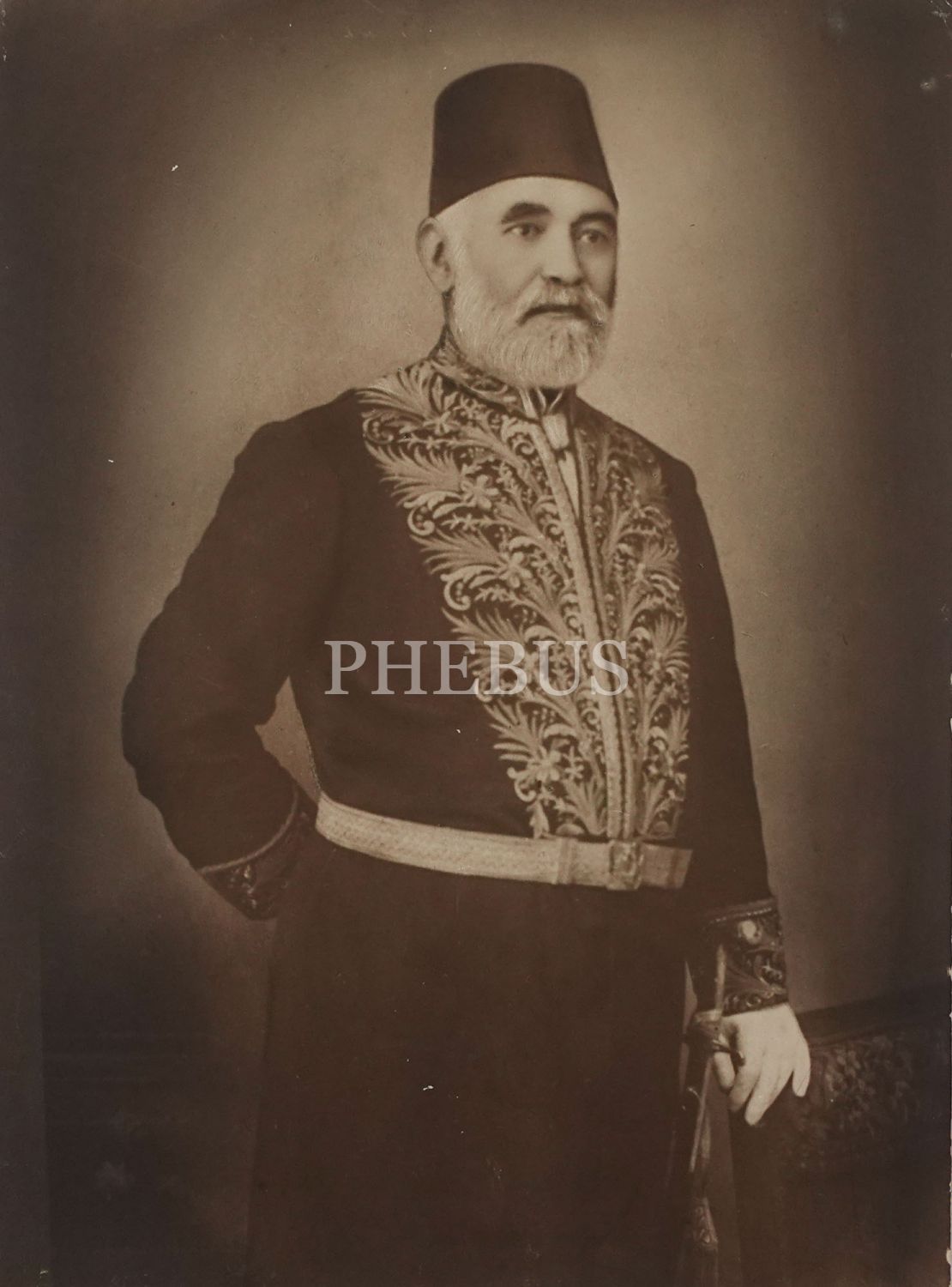 Bir Osmanlı paşasının üniformasıyla aldırdığı portre fotoğrafının, Erken Cumhuriyet döneminde tab edilmiş agrandismanı, 29x38 cm...
