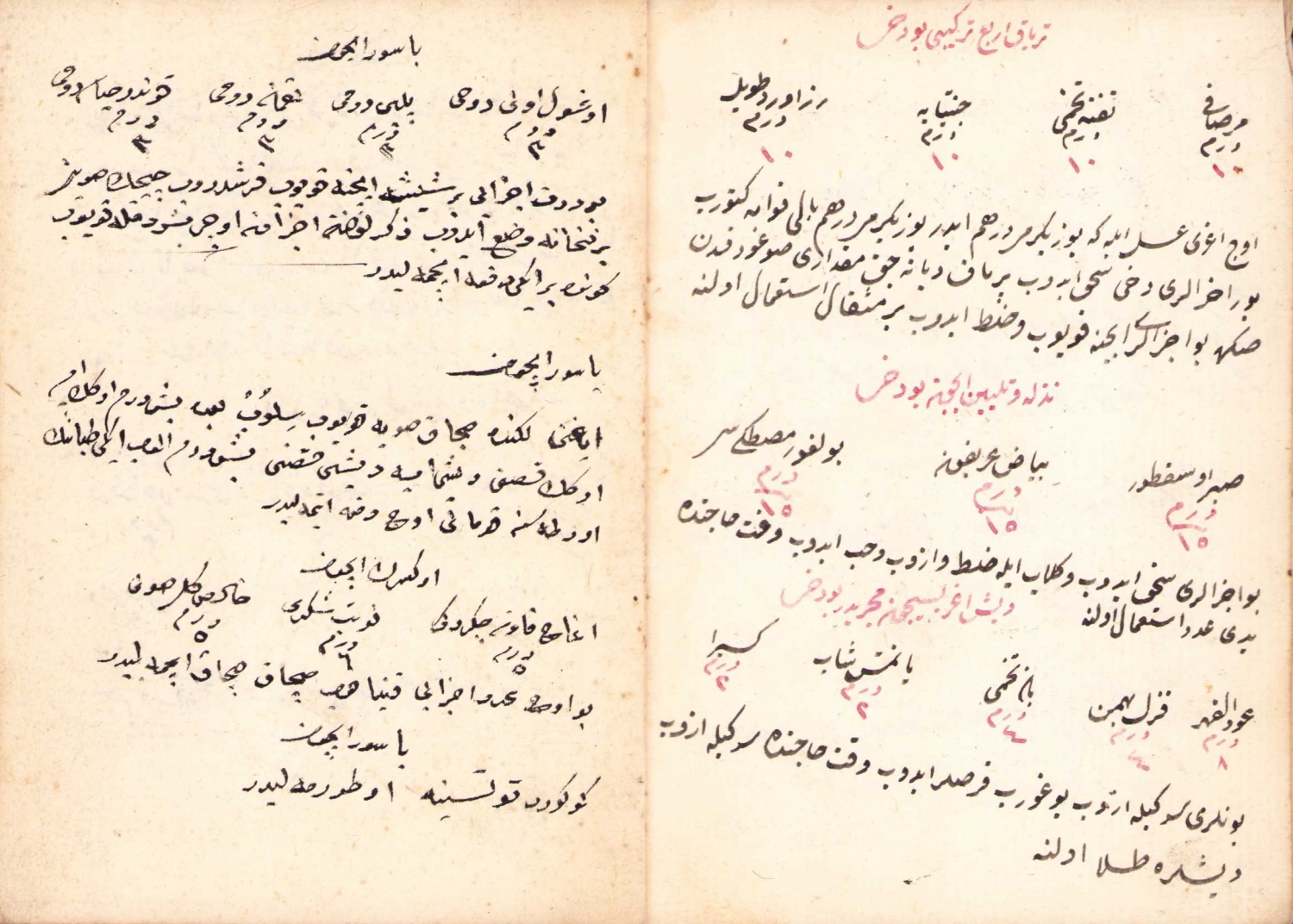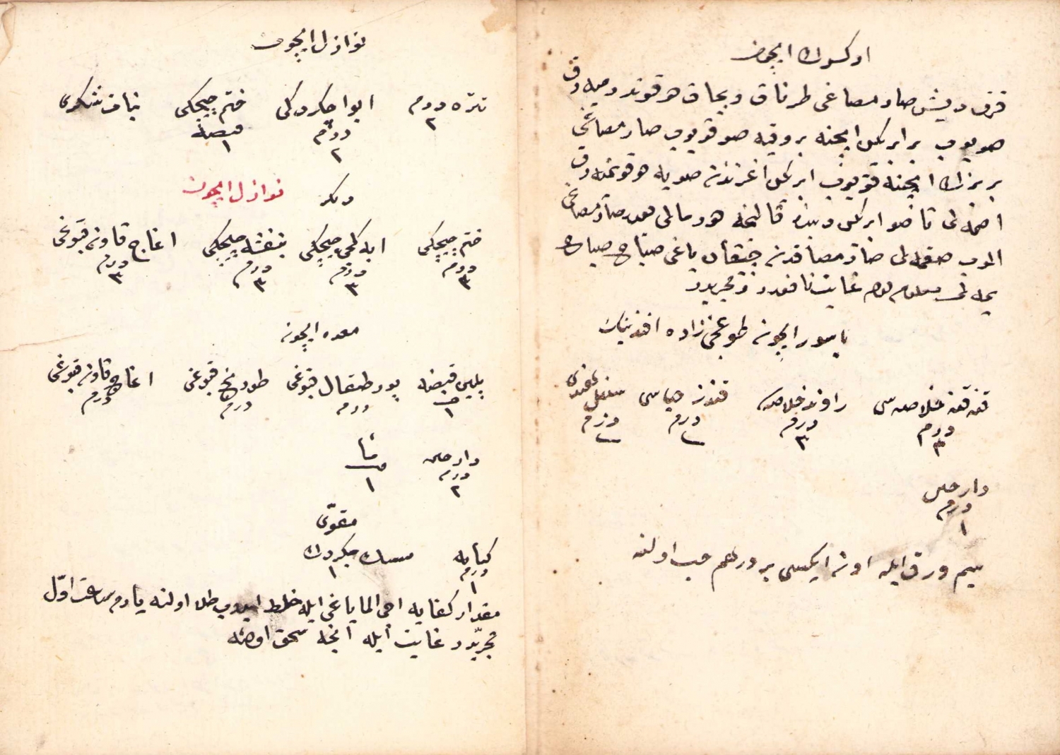 İshal, öksürük ve basur gibi muhtelif rahatsızlıklar için tedavi edici tarifler içeren el yazması, Osmanlıca, 24 sayfa, 14,5x10 cm.