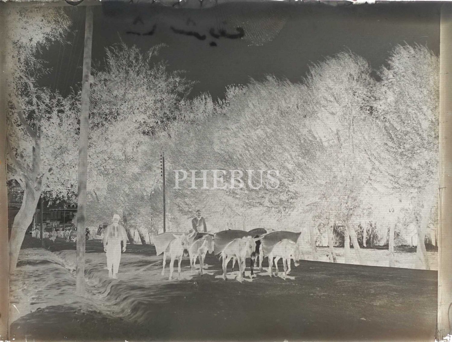 Osmanlı döneminde, eşeklerle yük taşıyan köylülerin fotoğrafının cam negatifi, 12x9 cm...