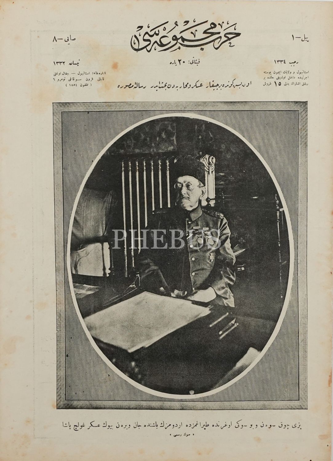 Türk dostu Goltz (Golç) Paşa´nın vefatından önce çekilen son fotoğrafına kapağında yer veren HARP MECMUASI´nın 8. sayısı, Nisan 1332, 25x34 cm...