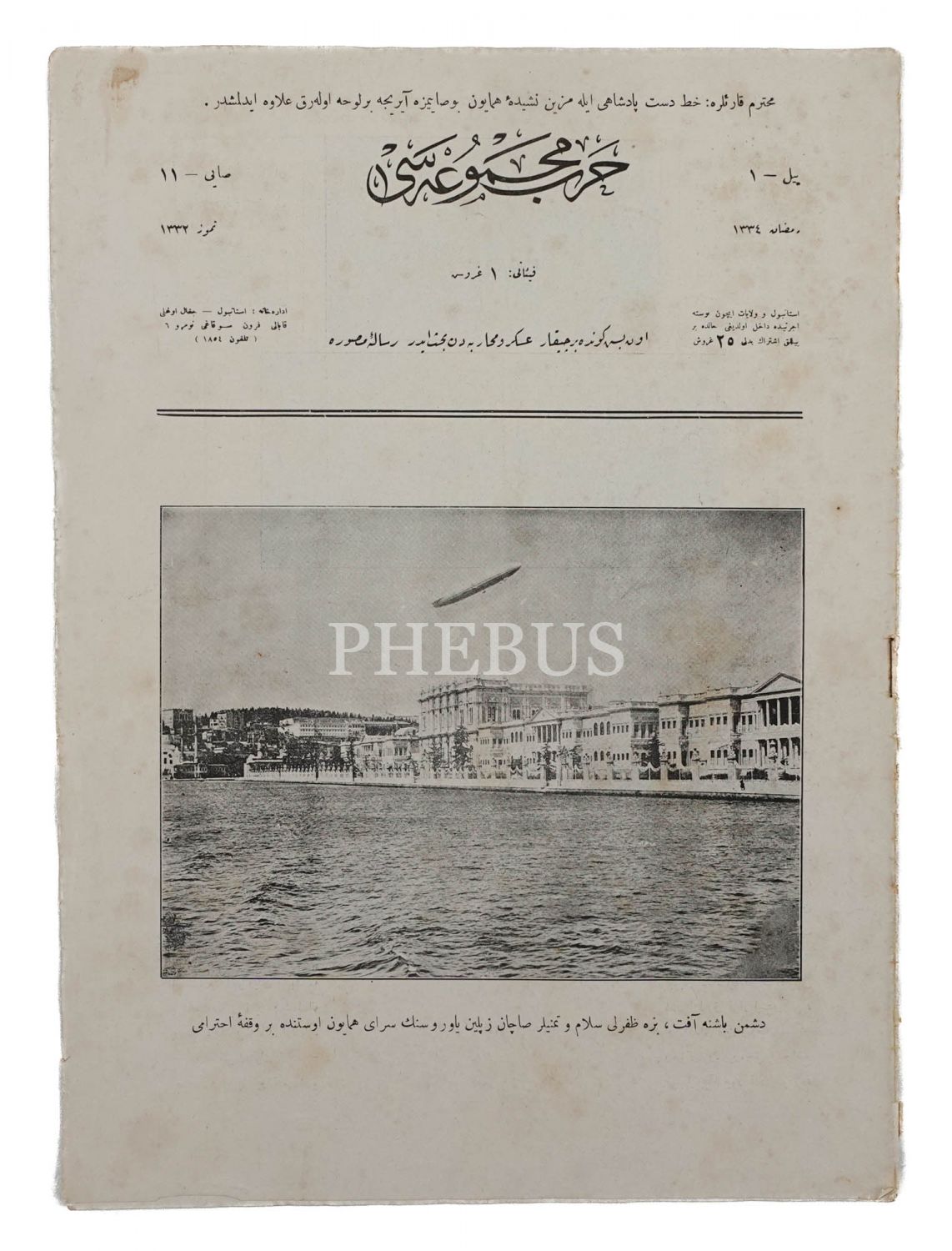 Kapağında Dolmabahçe Sarayı üzerinde uçan zeplinin fotoğrafına yer veren Harp Mecmuası´nın 11. sayısı, 24x33 cm...